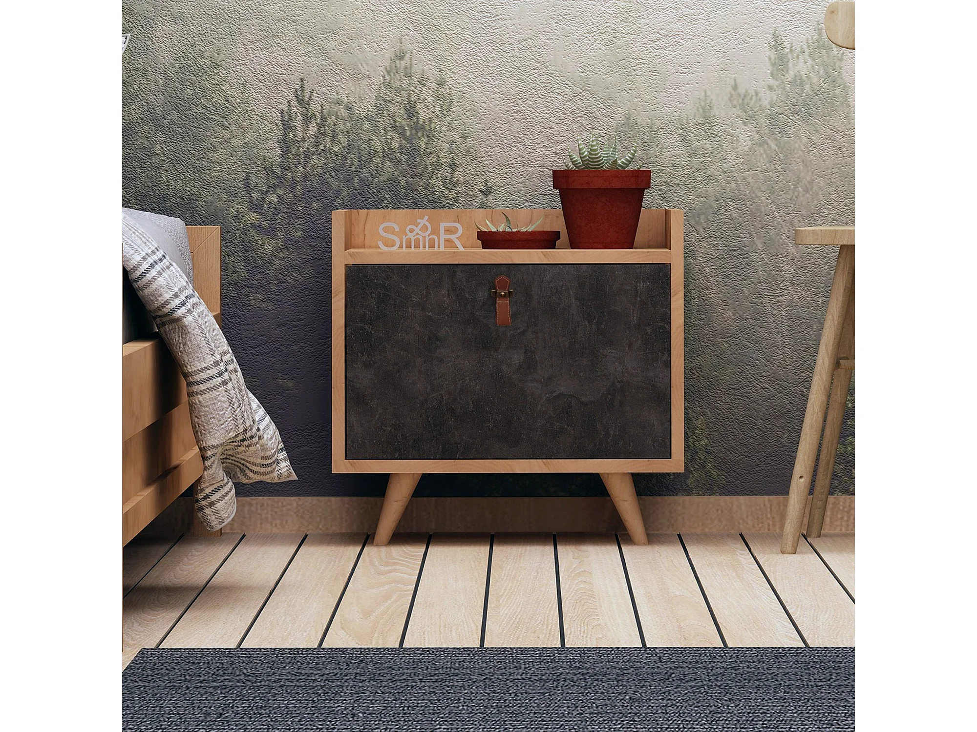 Table de chevet 100 % aggloméré plaqué mélamine, couleur chêne béton foncé 50x55x40