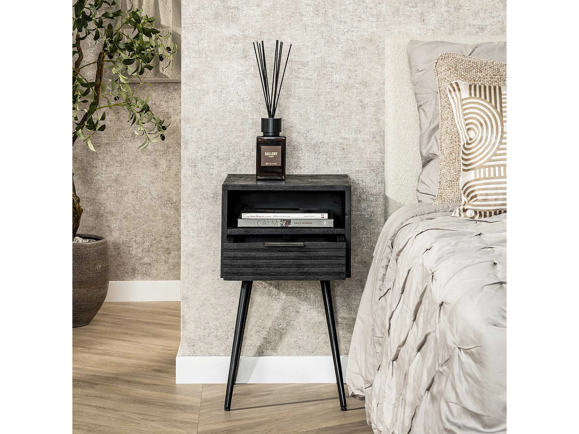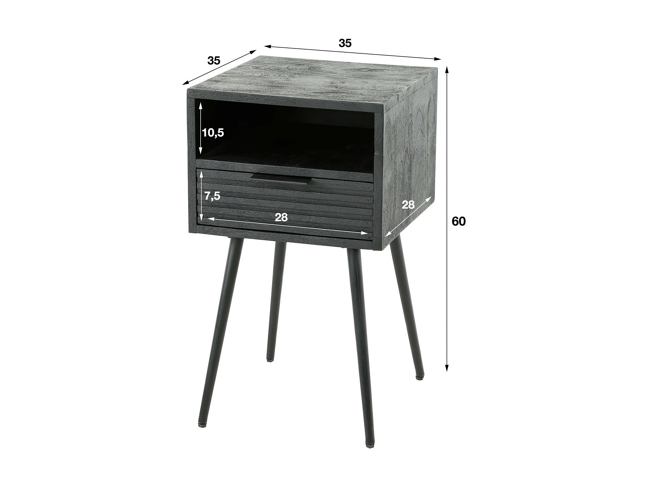 Table de nuit en bois et métal avec 1 tiroir et 1 porte 42x36,5x71h cm