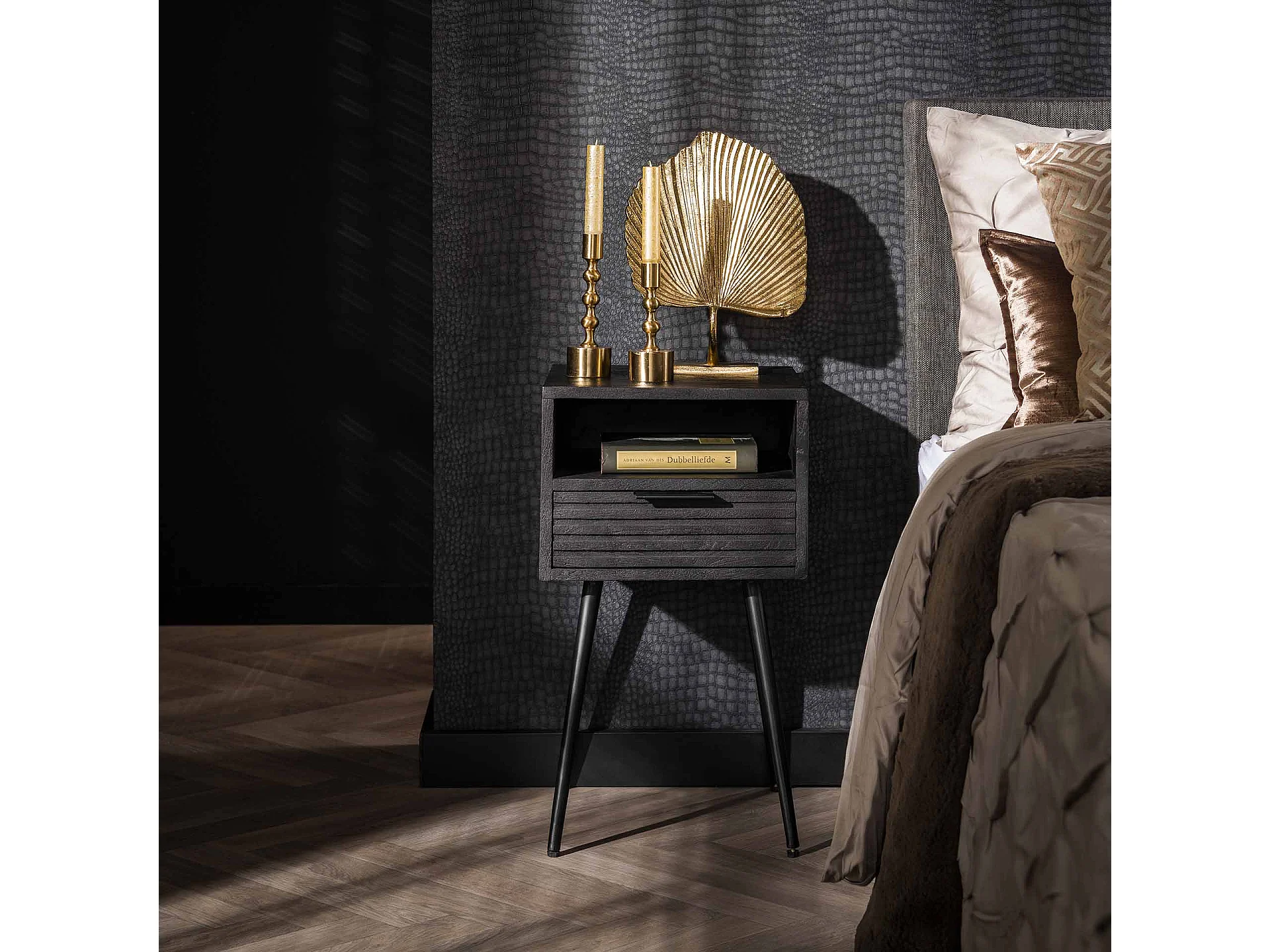 Table de chevet noir 40x33x46 cm bois de manguier solide