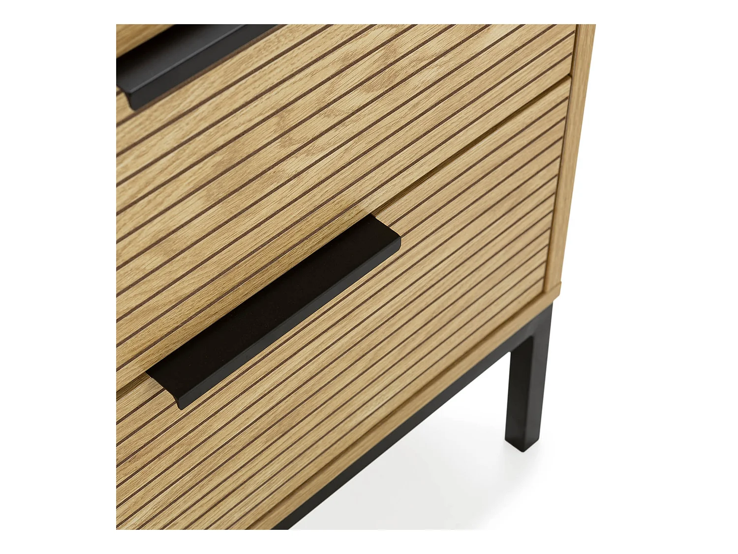 Table de chevet Alma 3 tiroirs couleur bois, pieds métal