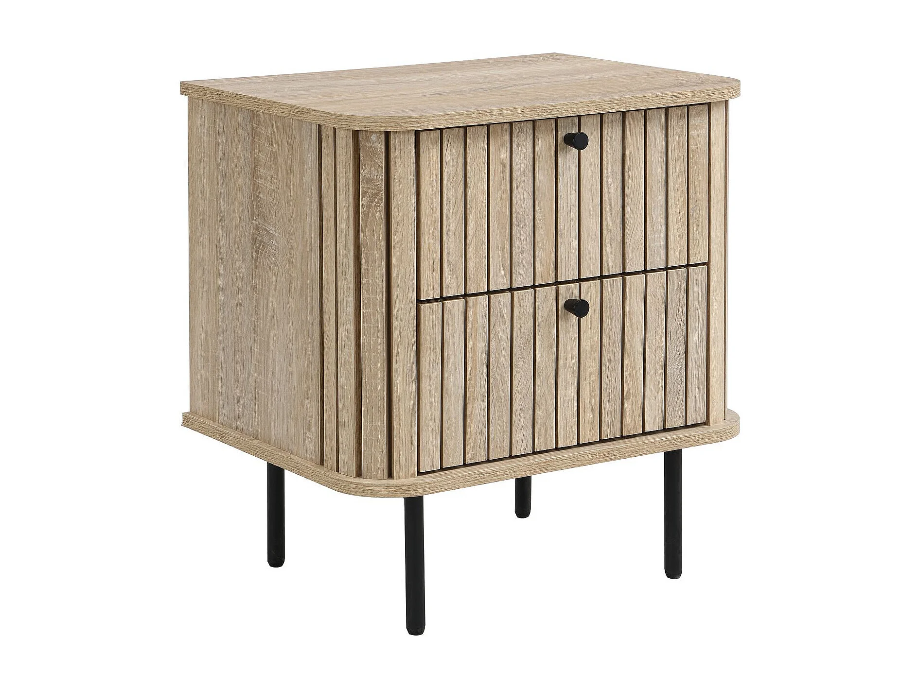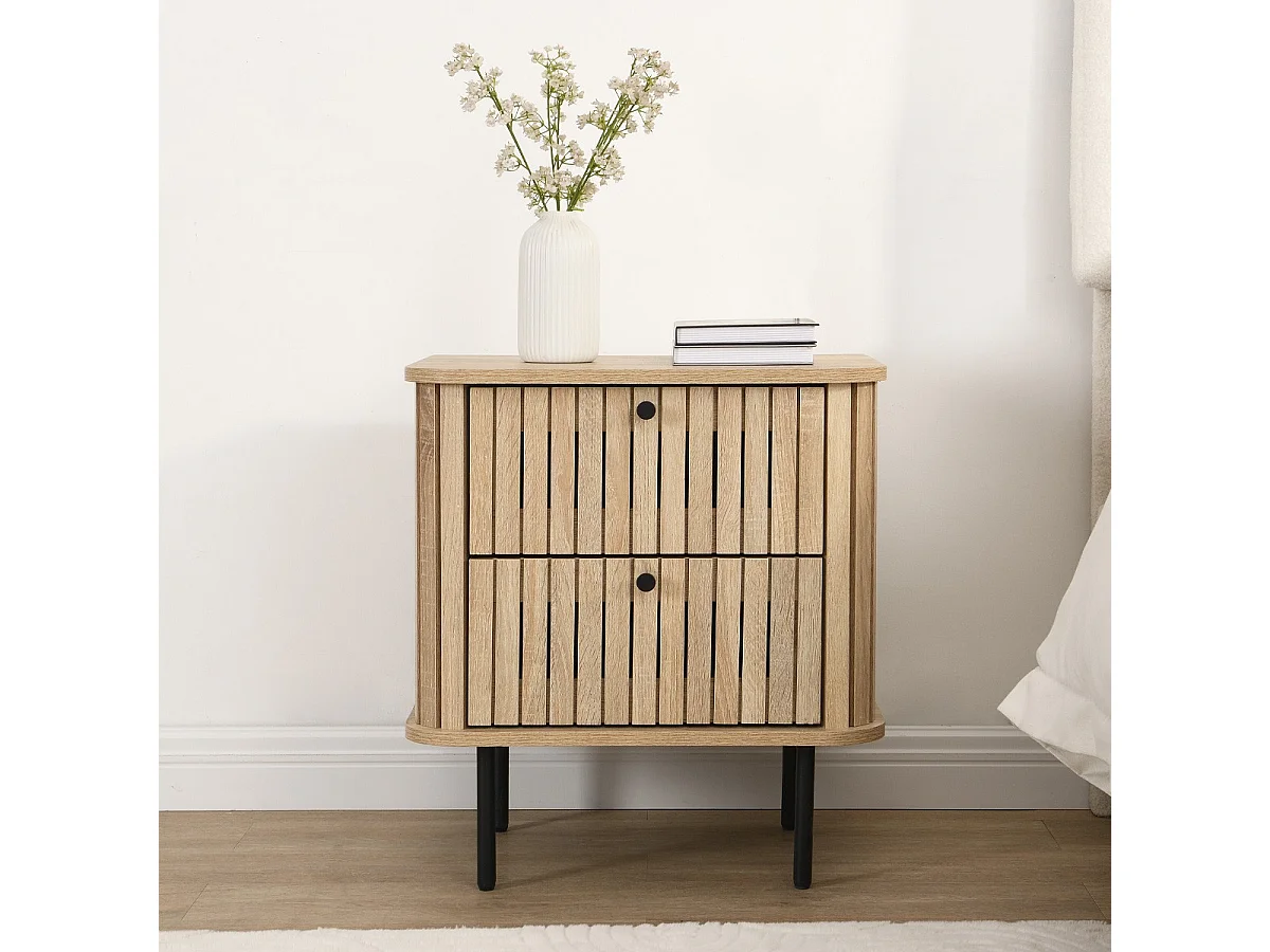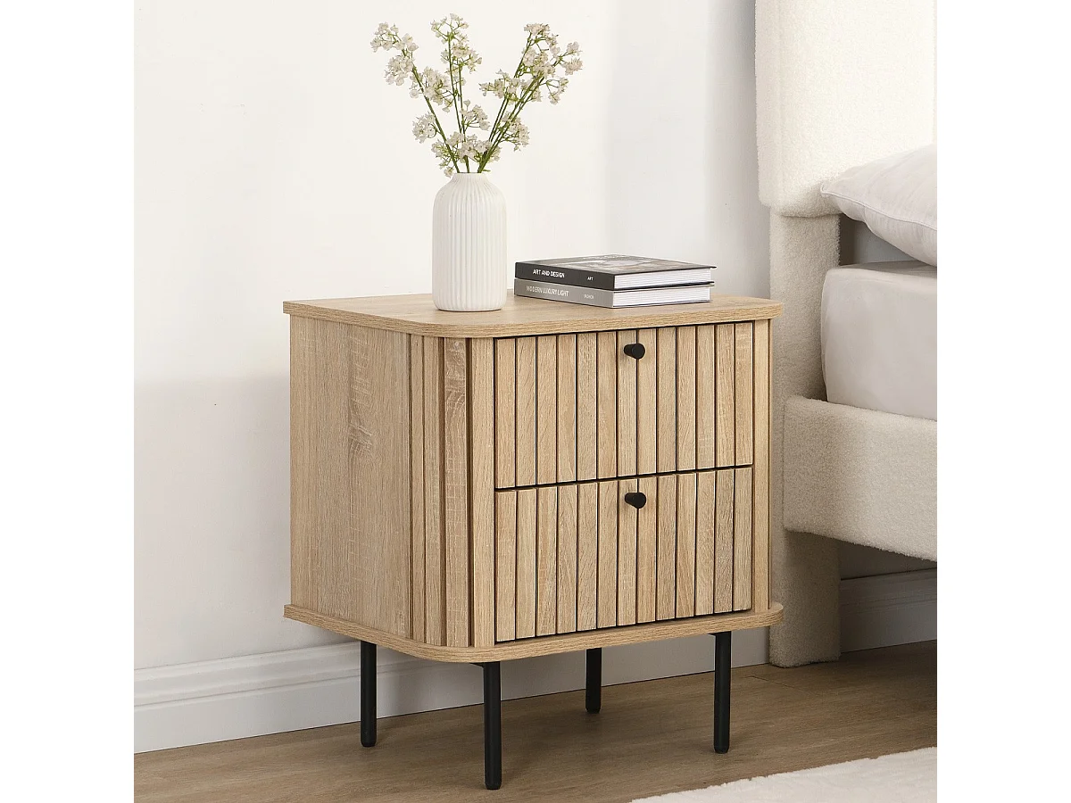 Table de chevet 2 tiroirs rainurés couleur chêne L50xH55 cm - Solna