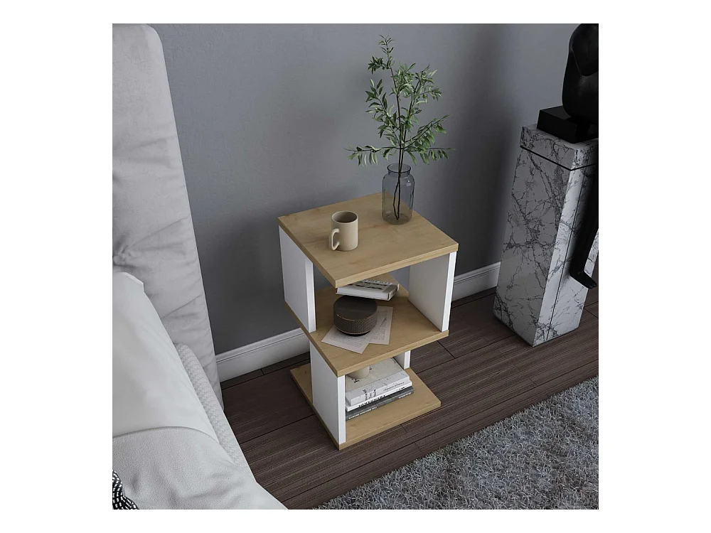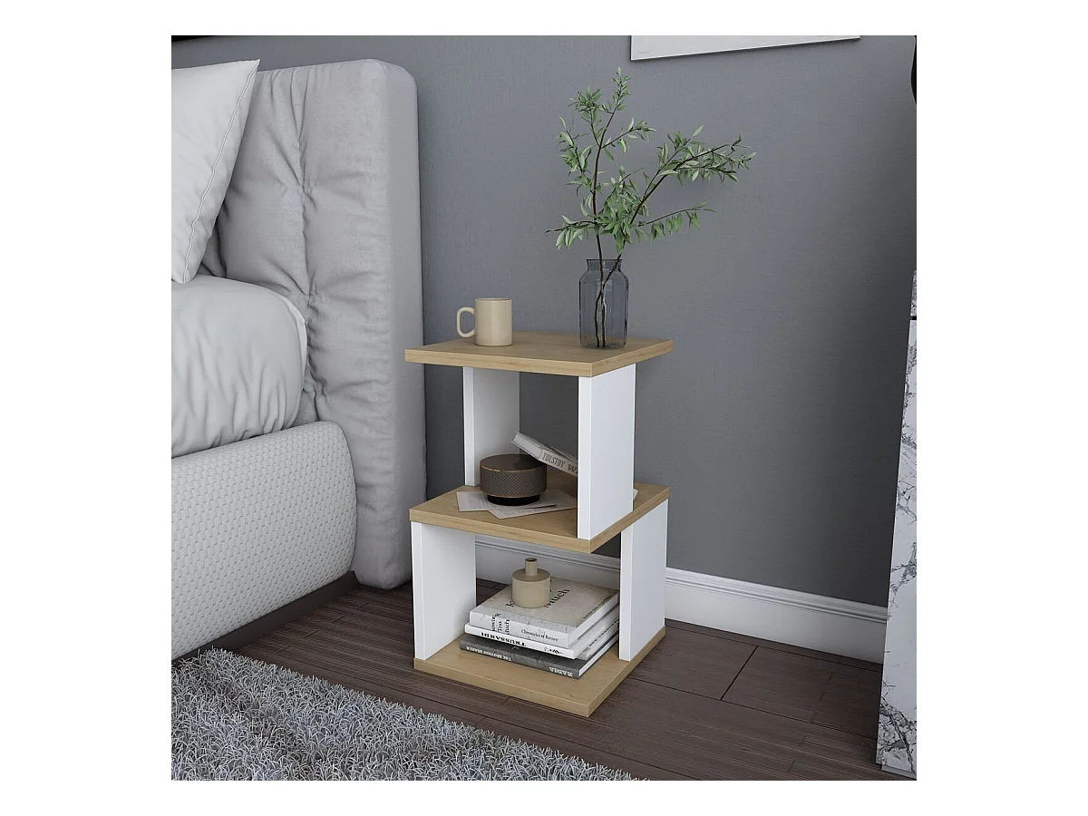 Table de chevet 3 niveaux décor bois chêne et blanc L29,6 cm - CARTER