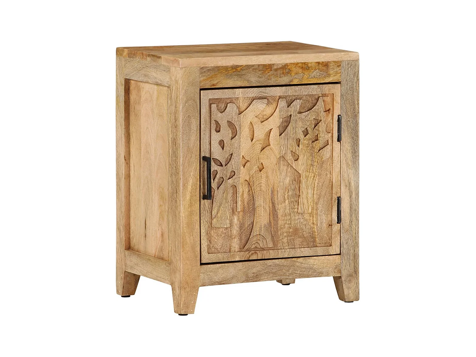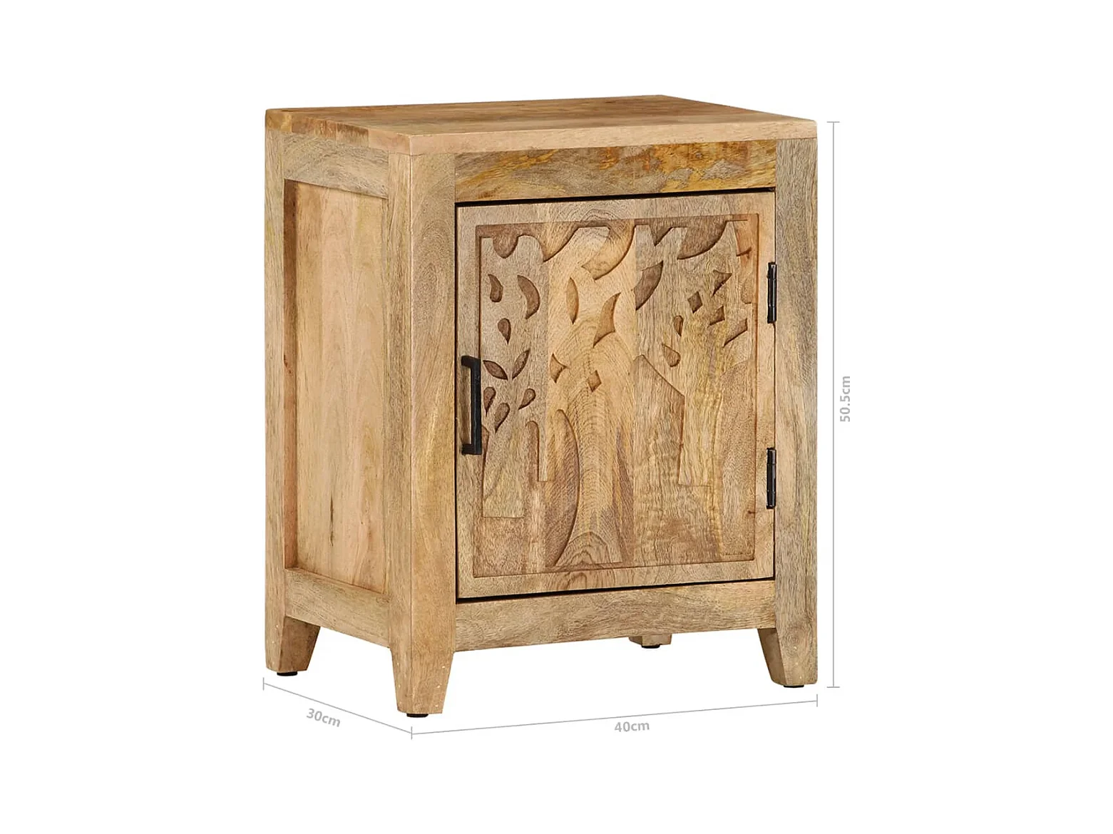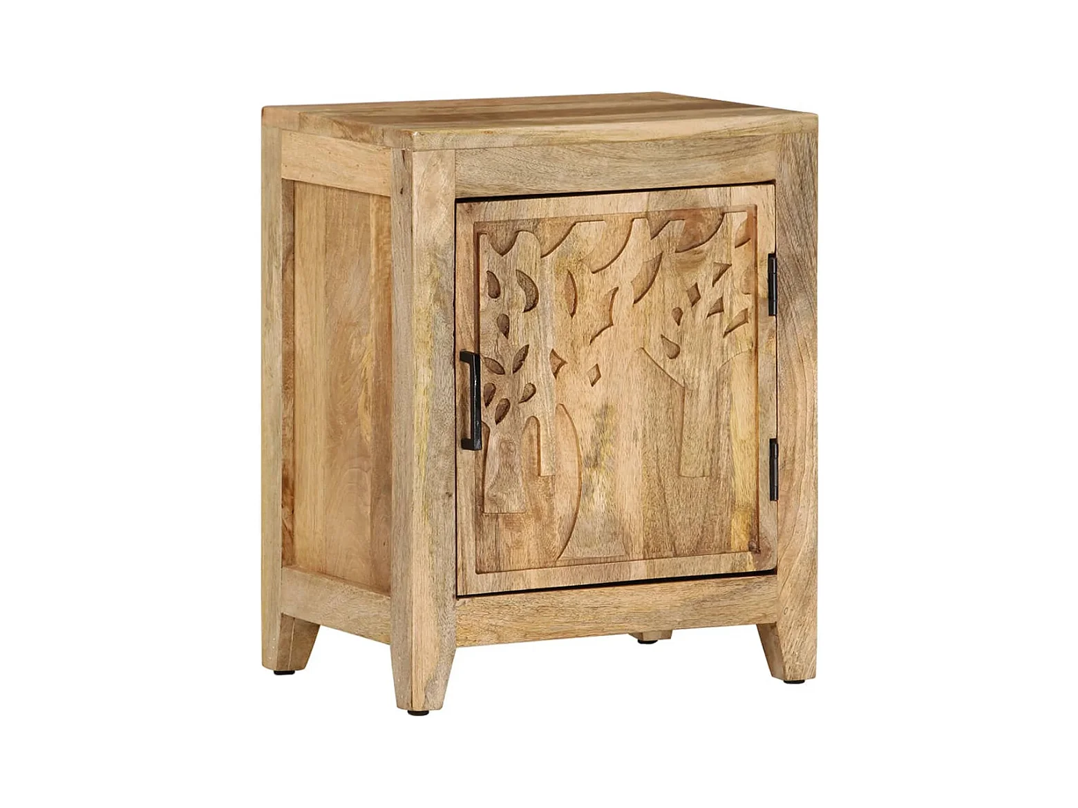 Table de chevet sculptée 40x30x50 cm Bois de manguier massif