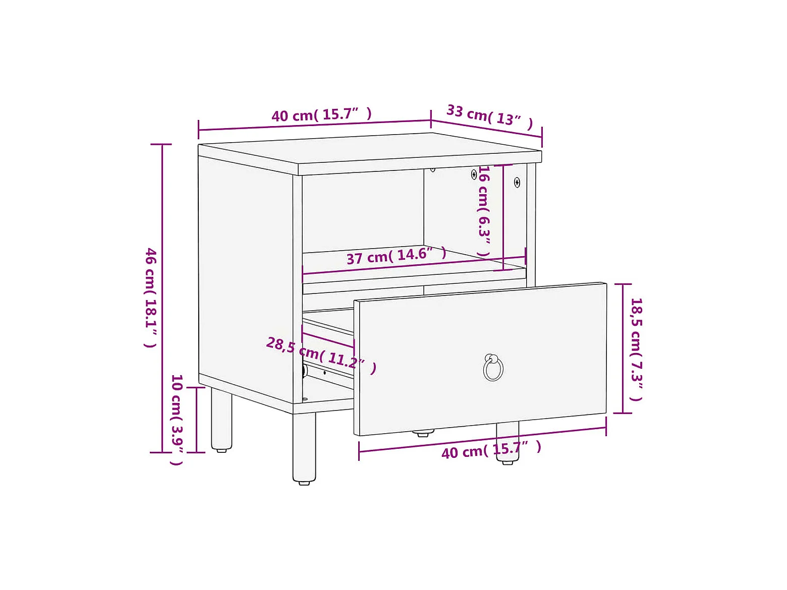 Table de chevet 40x33x46 cm Bois de manguier solide