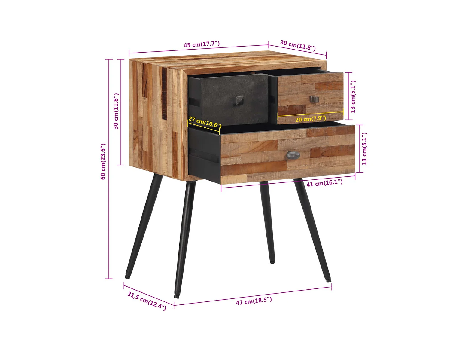 Table de chevet 47x31,5x60 cm bois massif de teck