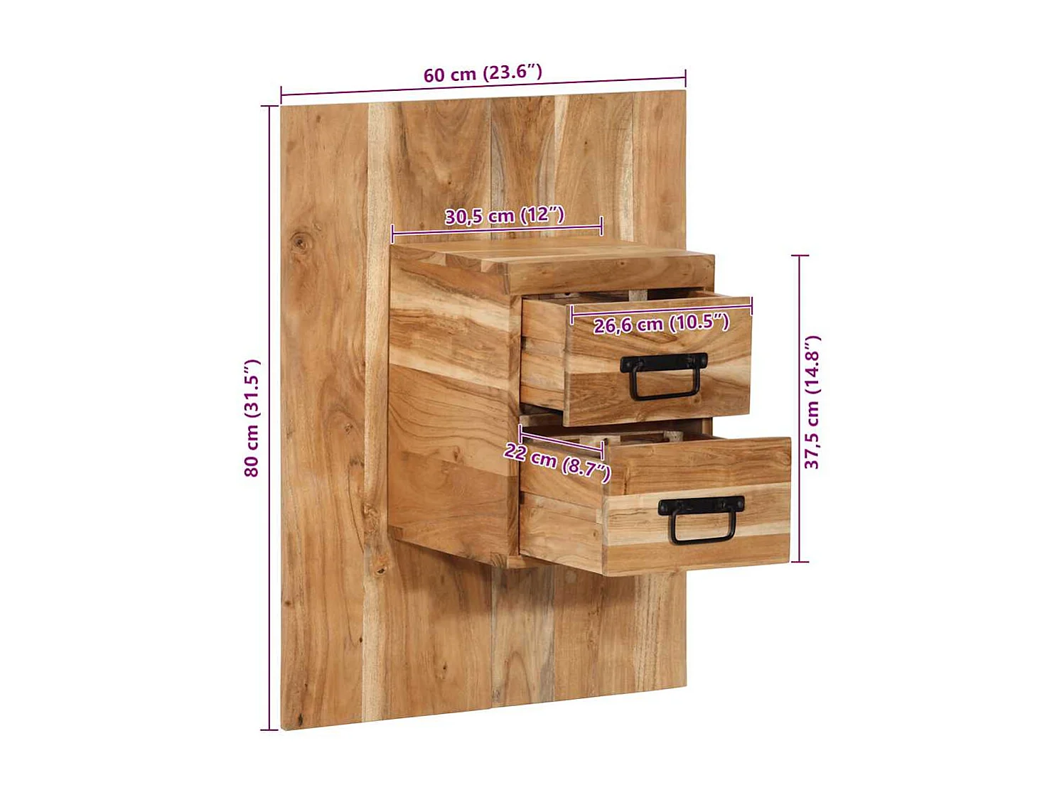 Table de chevet 60x32x80 cm bois d'acacia solide