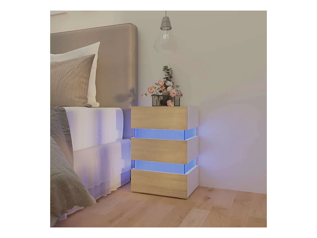 Table de chevet à LED chêne sonoma 45x35x67cm bois d'ingénierie