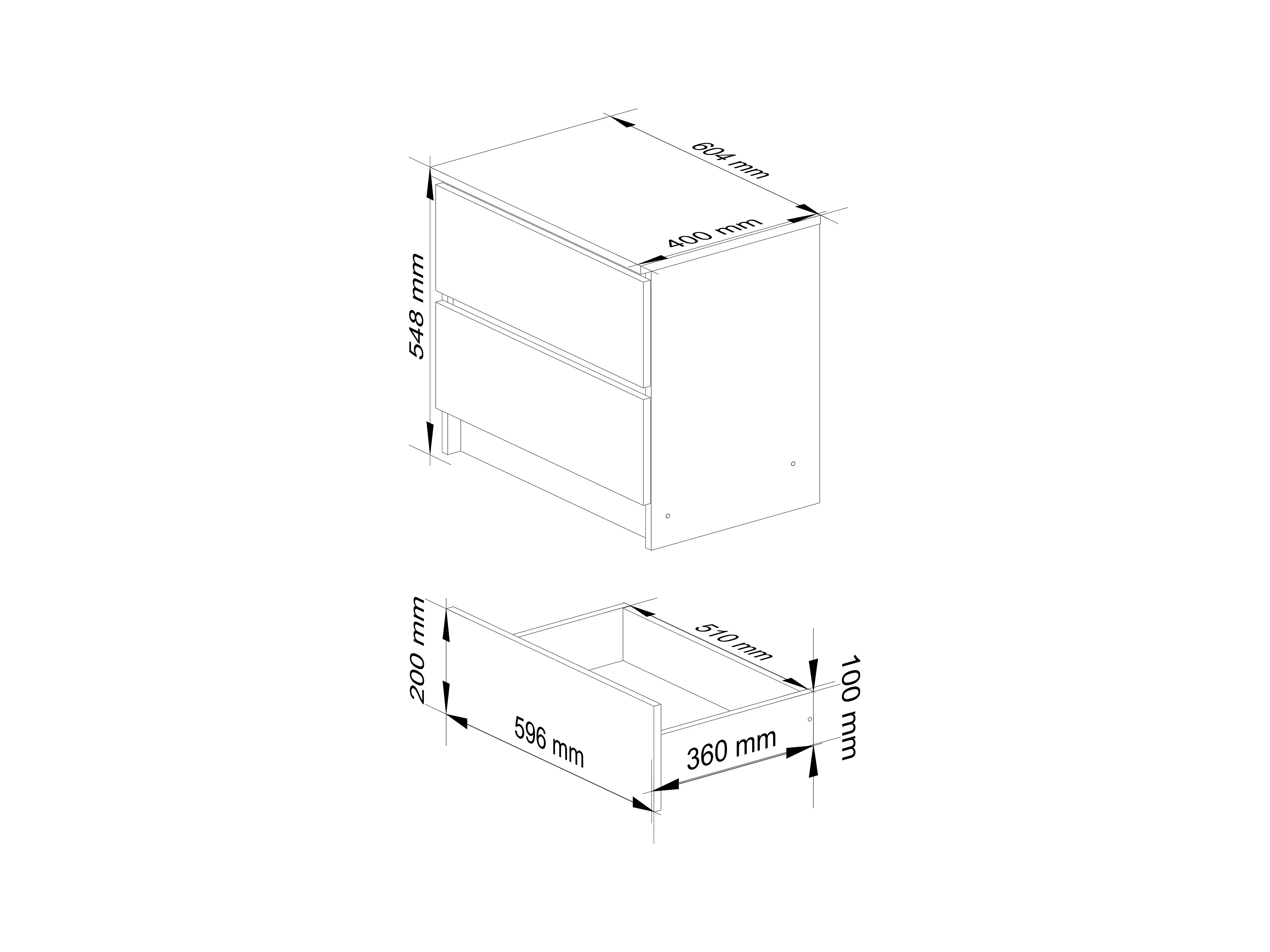Table de chevet AKORD K60 Aulne 60 cm 2 tiroirs façade Aulne 60x40x55 cm
