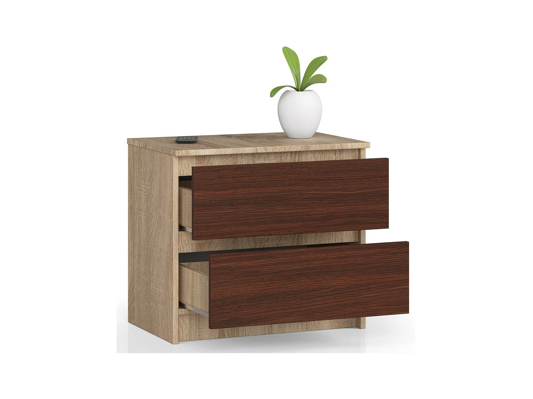 Table de chevet AKORD K60 Chêne Sonoma 60 cm 2 tiroirs façade Wengé 60x40x55 cm