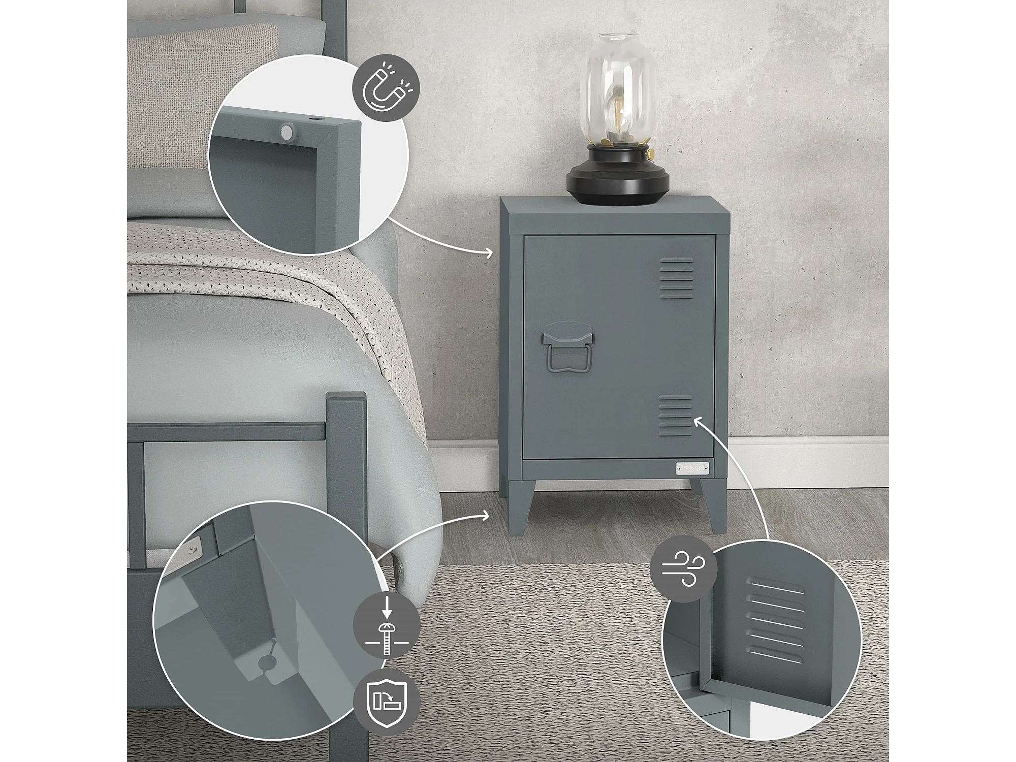 Table de chevet armoire 40x30x58 cm anthracite mat en acier poignée de porte à gauche style industriel meuble de nuit d'appoint commode de chambre