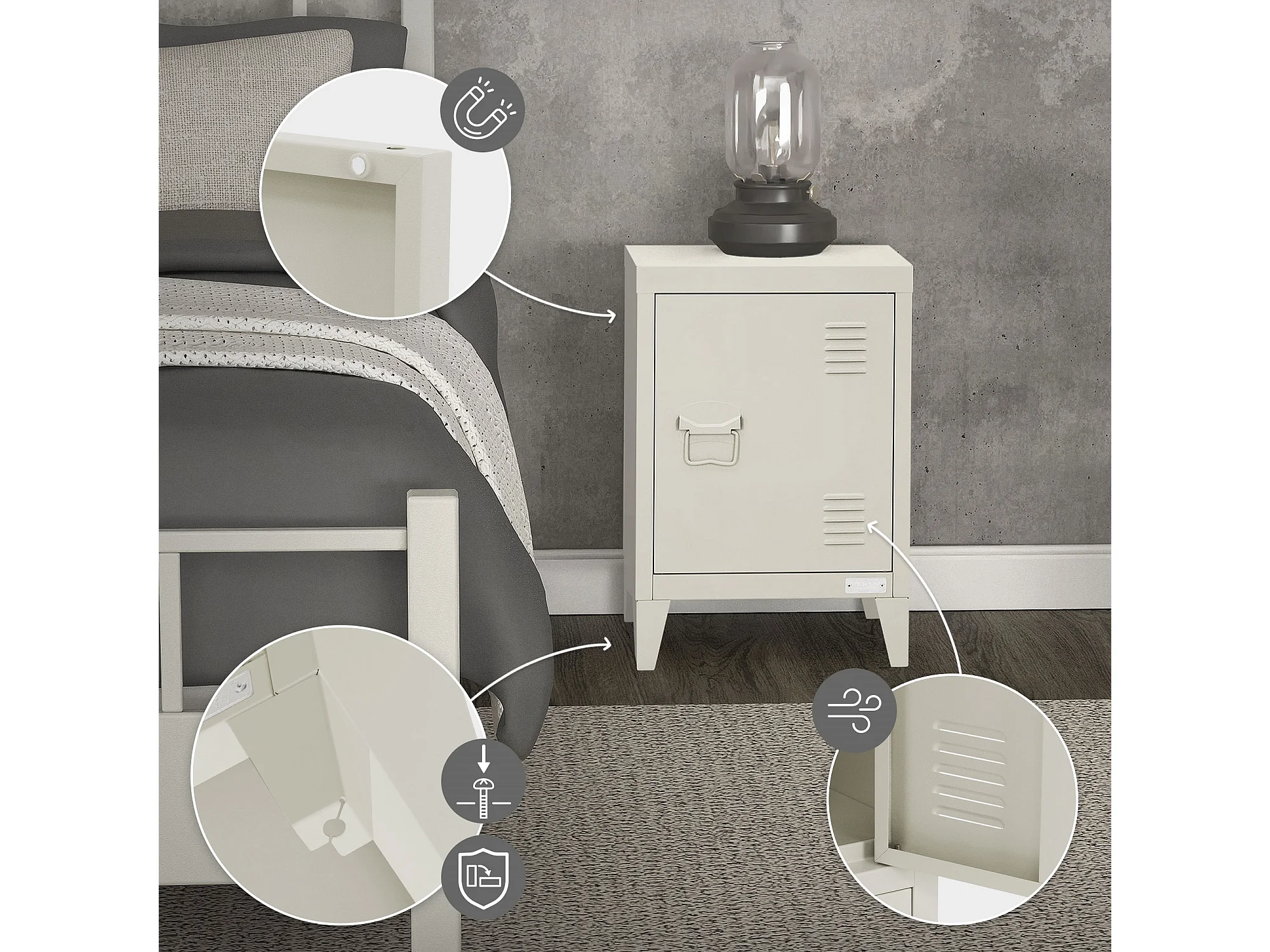 Table de chevet armoire 40x30x58 cm gris clair mat en acier poignée de porte à gauche style industriel meuble de nuit d'appoint commode de chambre