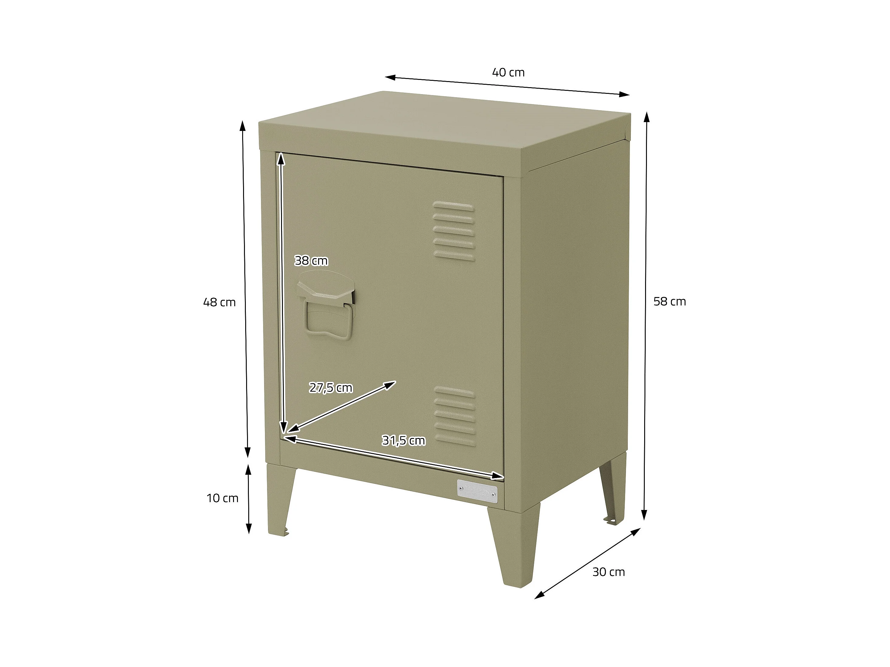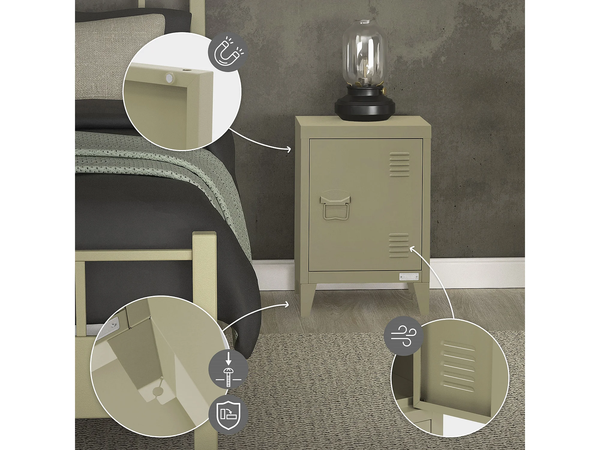 Chasity Table de chevet vert olive 34,5x39x62 cm acier