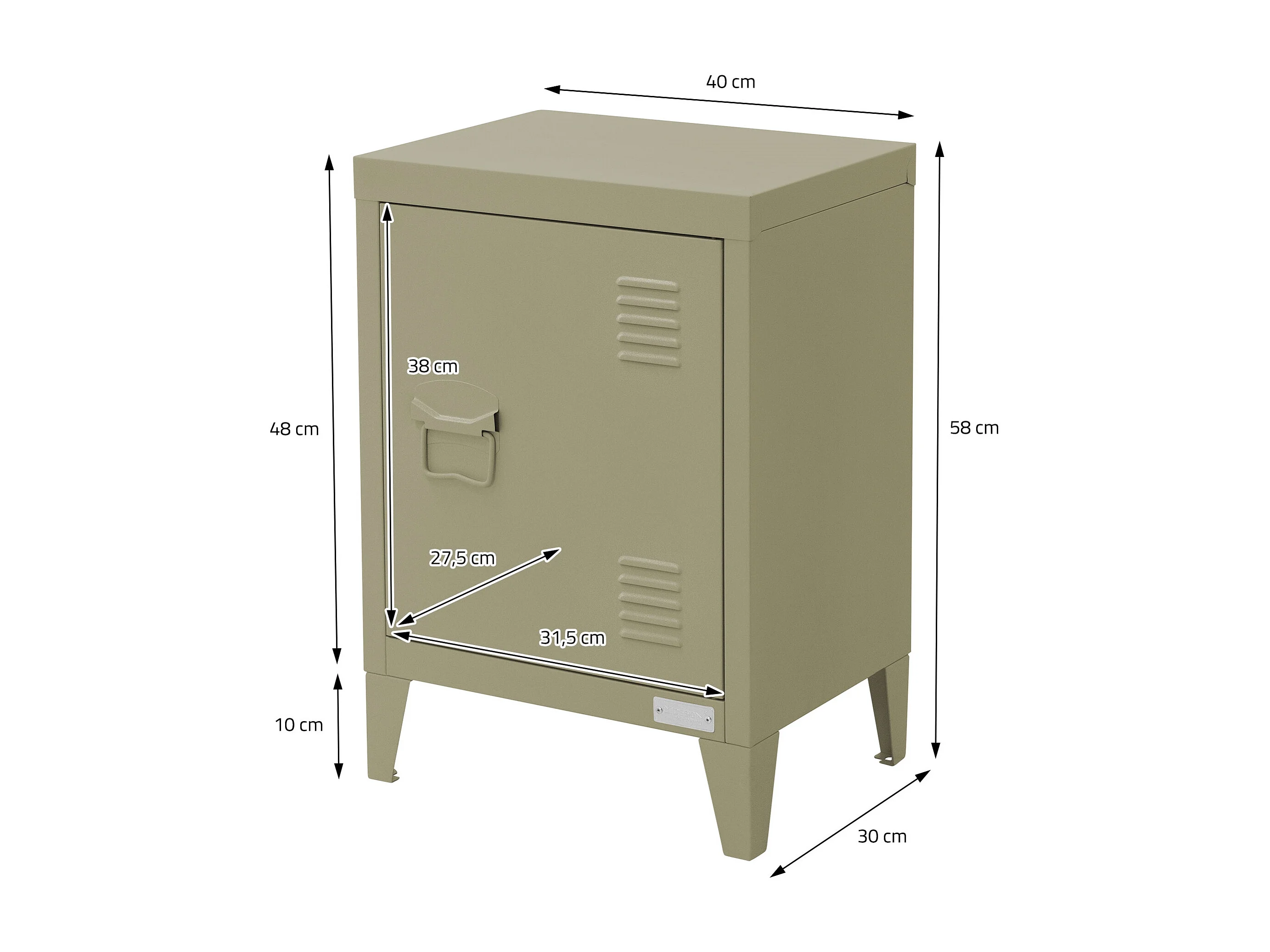 Jana Table de chevet vert olive 36x39x59 cm acier