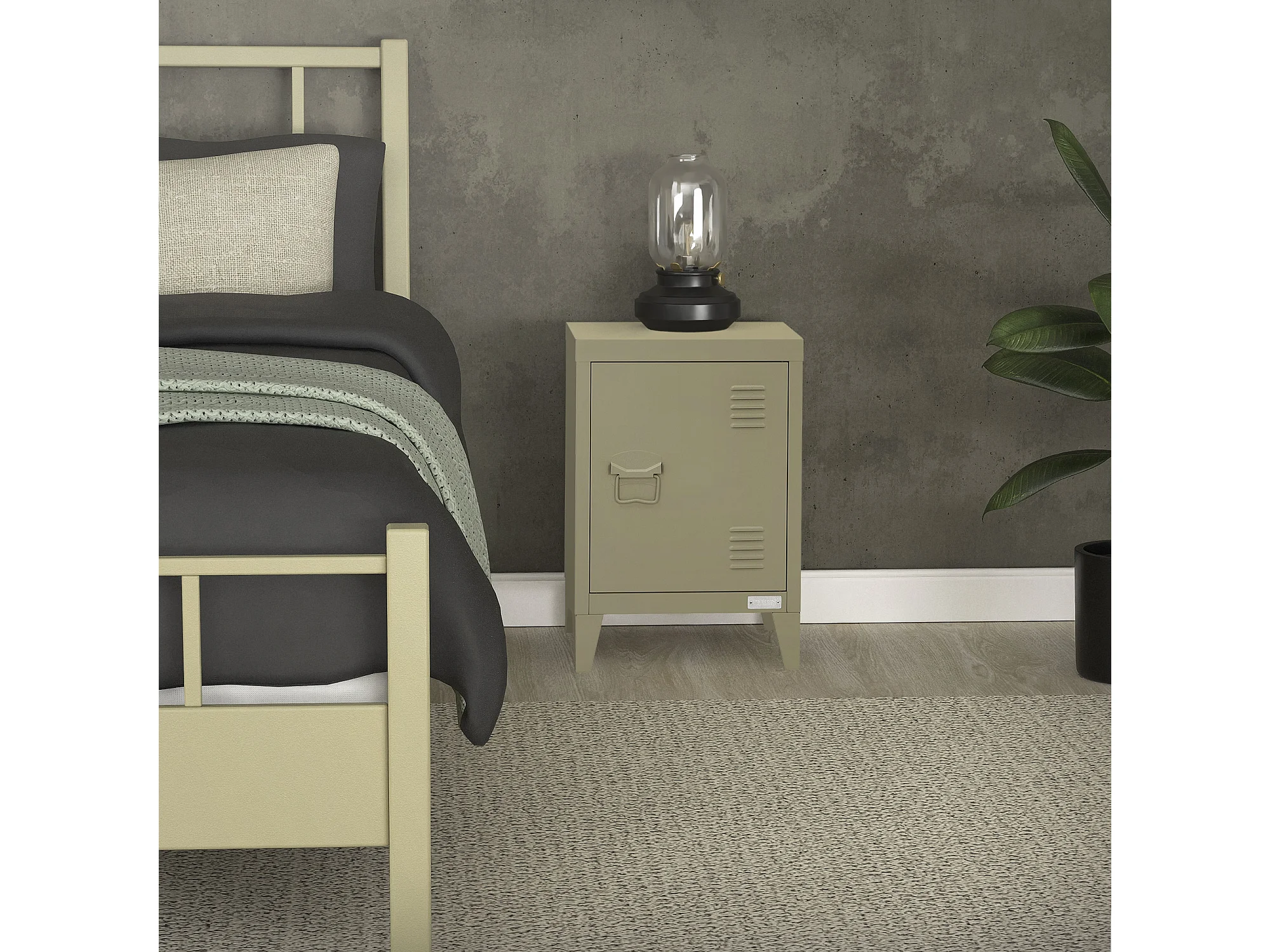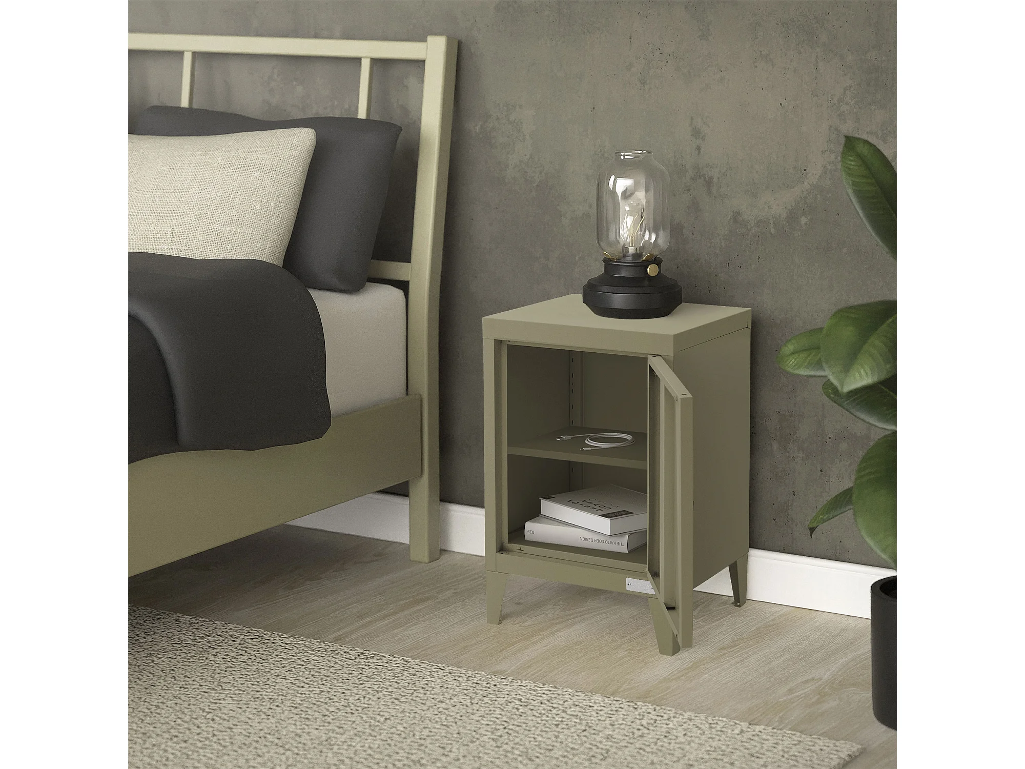 Table de chevet armoire 40x30x58 cm olive mat en acier poignée de porte à gauche style industriel meuble de nuit d'appoint commode d'entrée chambre