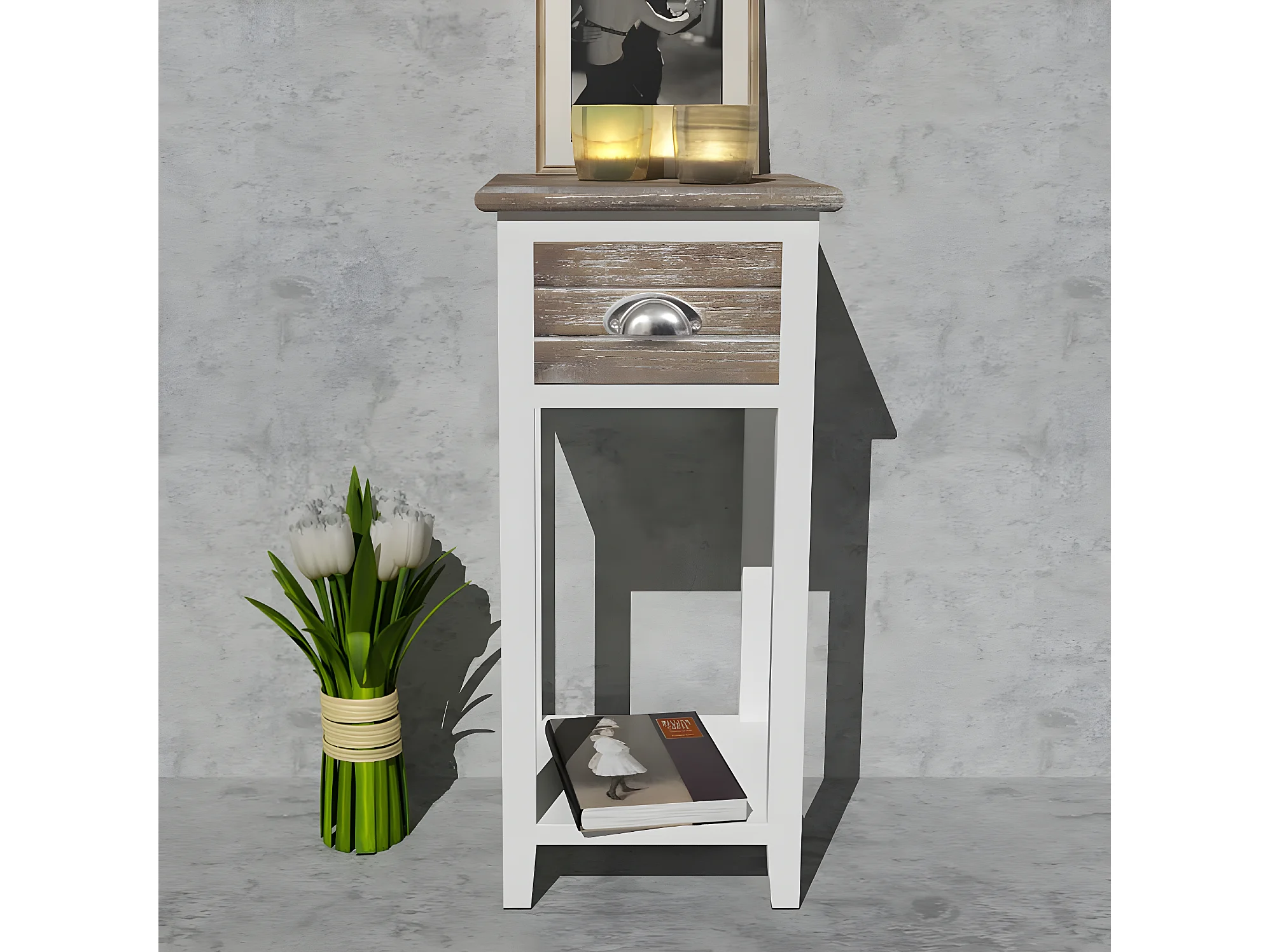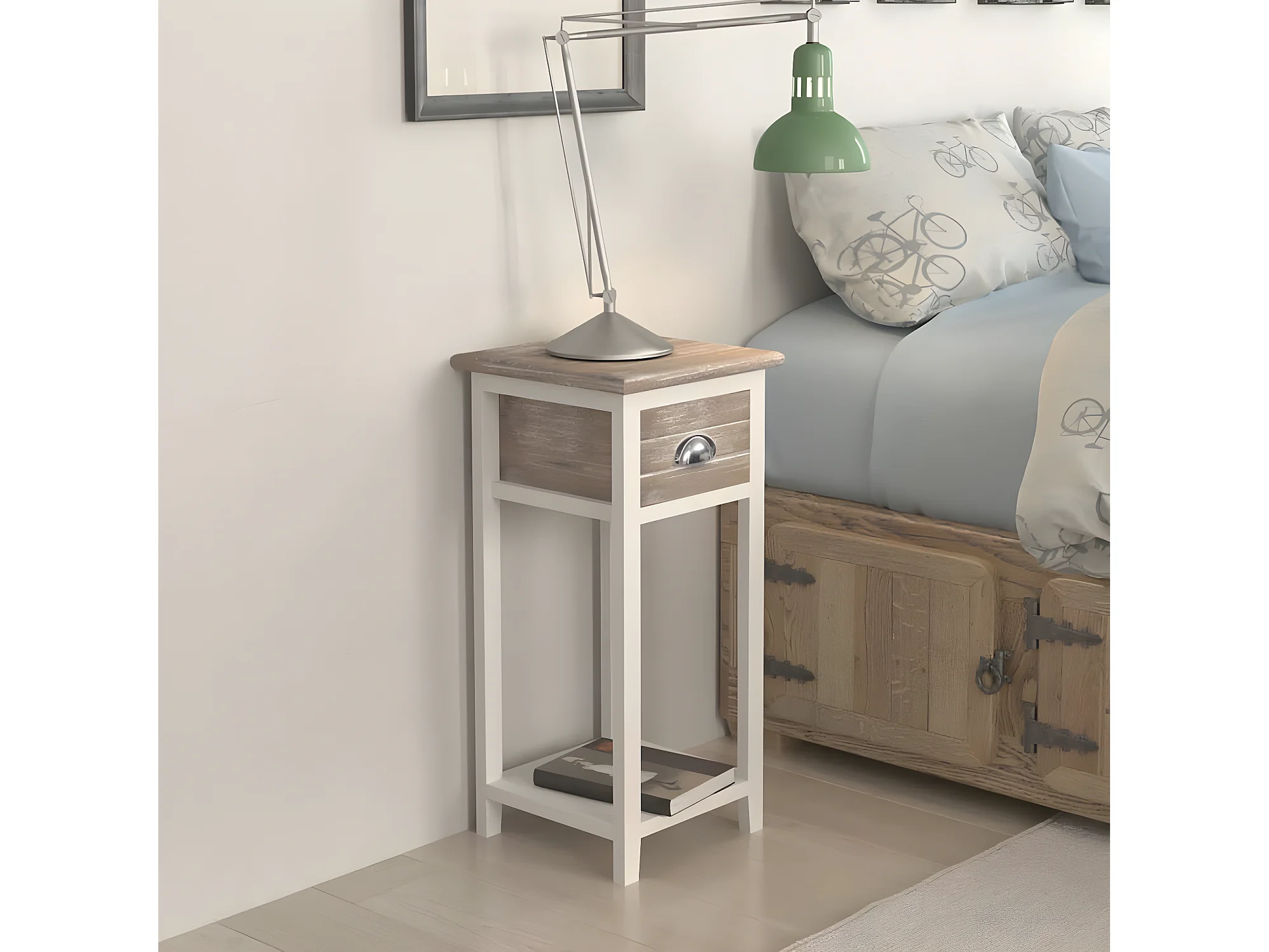 Table de chevet en bois d'hévéa massif 1 tiroir - Inès