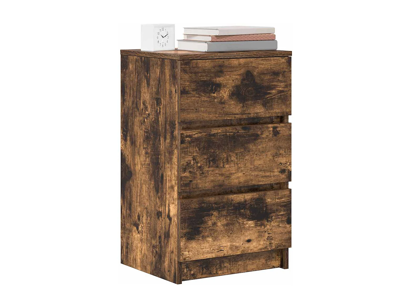 Table de chevet avec 3 tiroirs chêne fumé 39x35x65 cm
