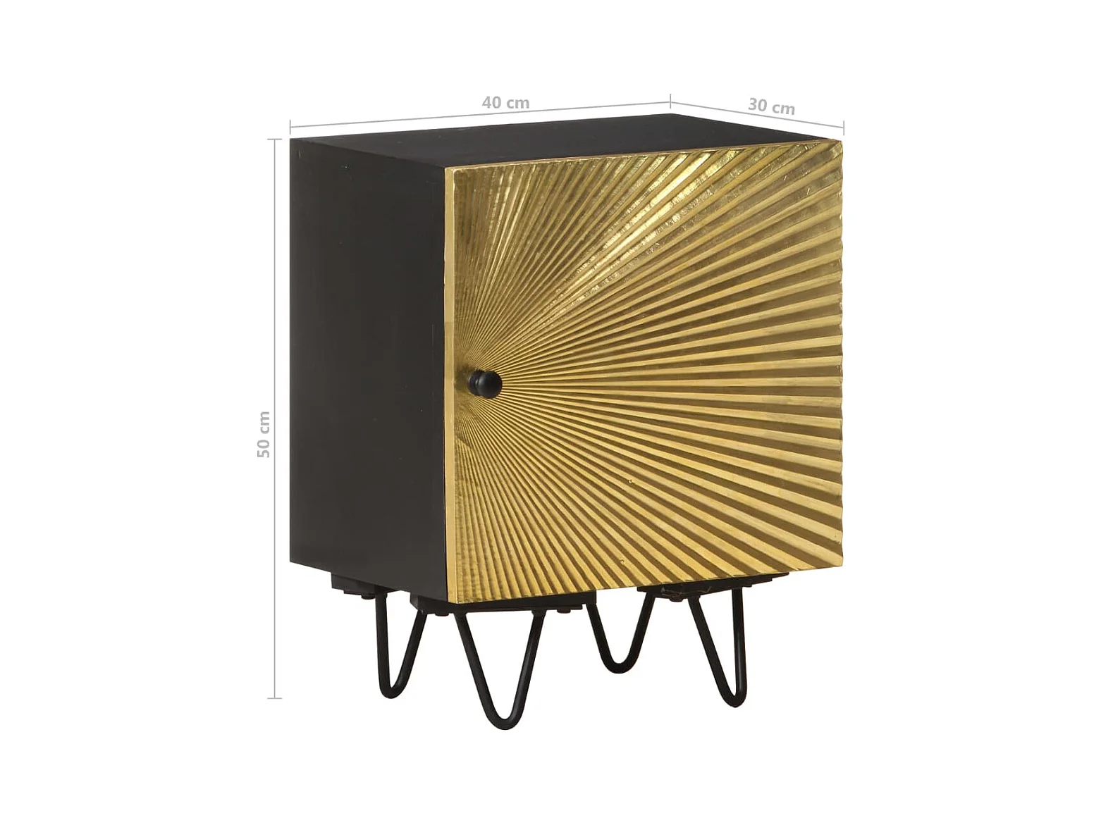 Table de chevet avec front en laiton 40x30x50cm Manguier massif