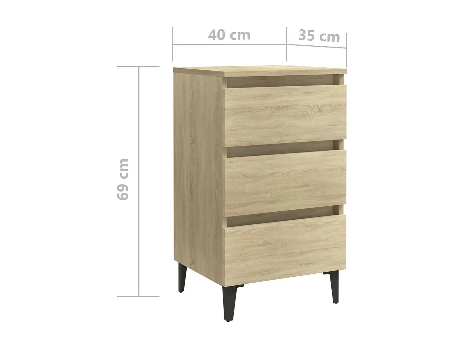Table de chevet avec pieds en métal Chêne sonoma 40x35x69