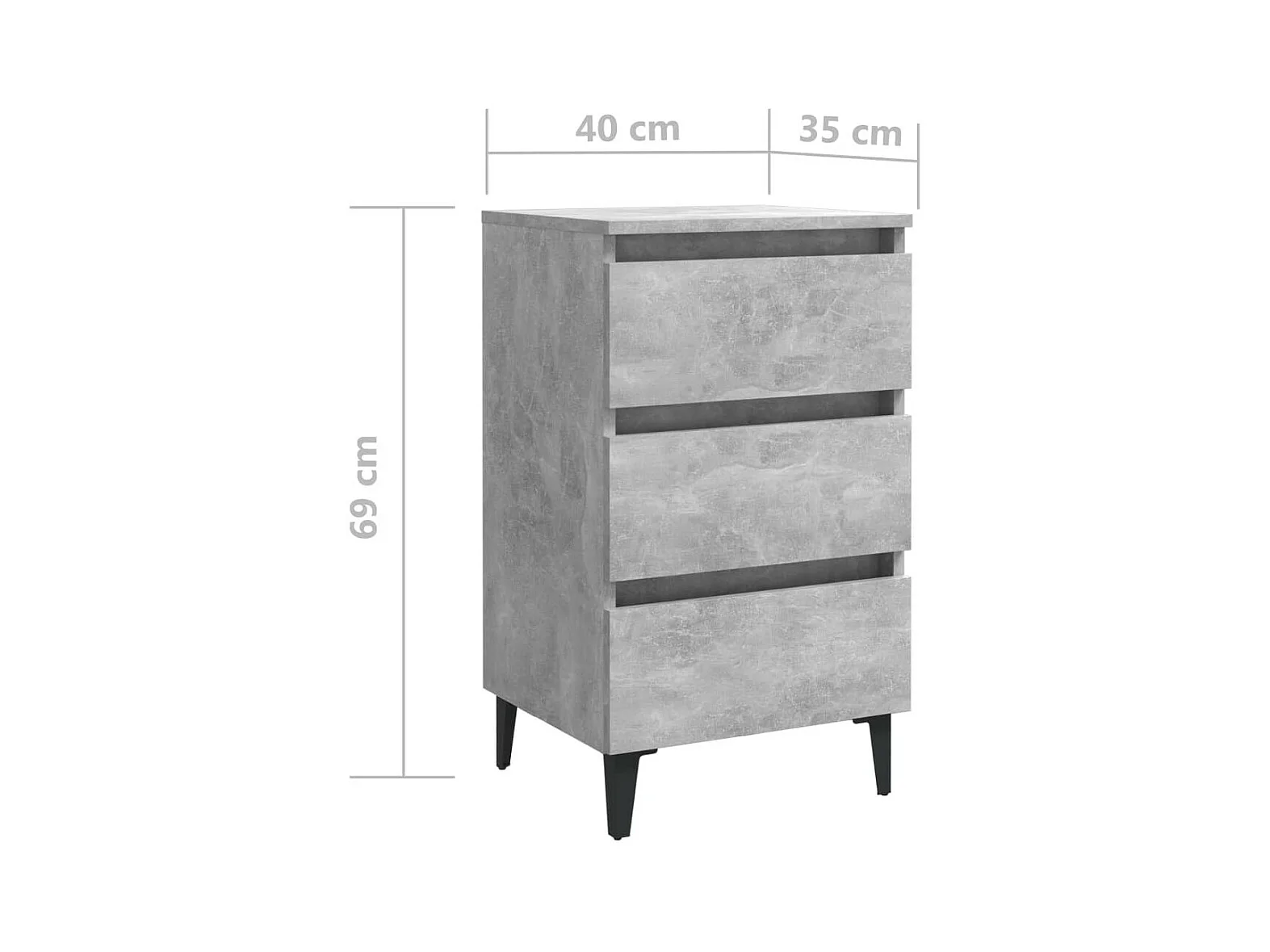 Table de chevet avec pieds en métal Gris béton 40x35x69
