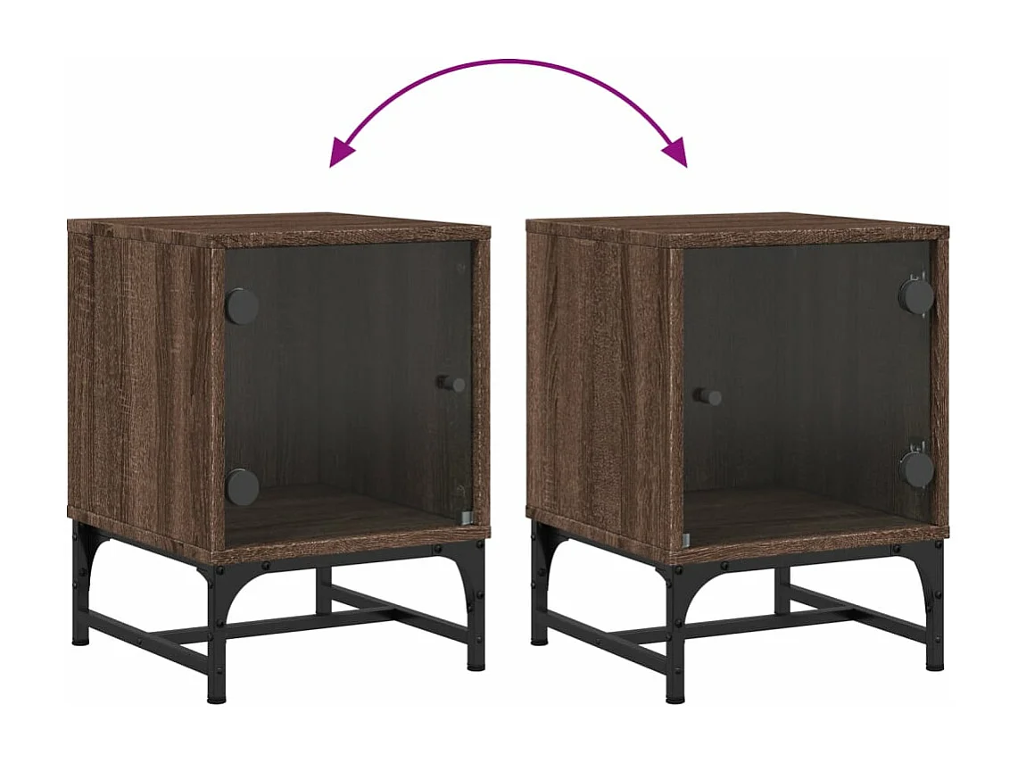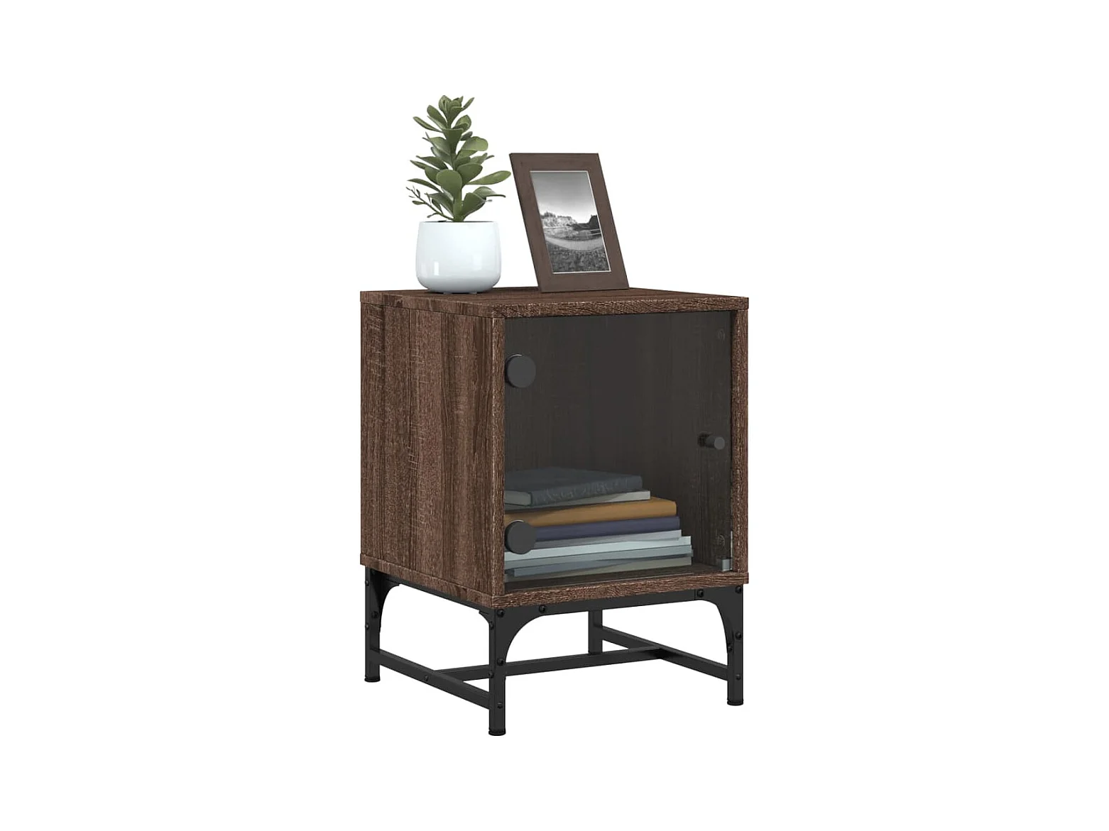Tables de chevet et portes vitrées 2pièces chêne marron 35x37x42cm