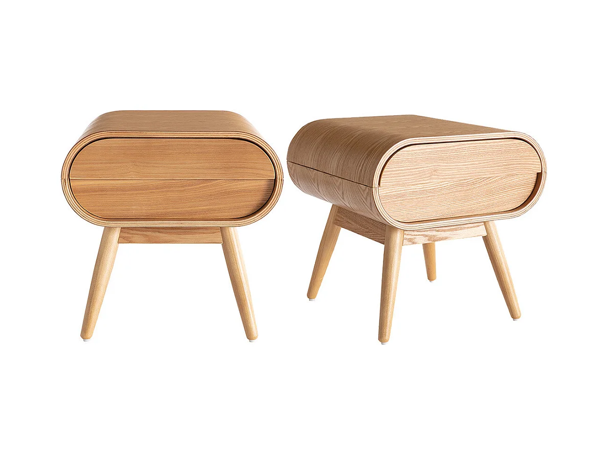 Table de chevet avec tiroir vintage bois clair (lot de 2) BJORG