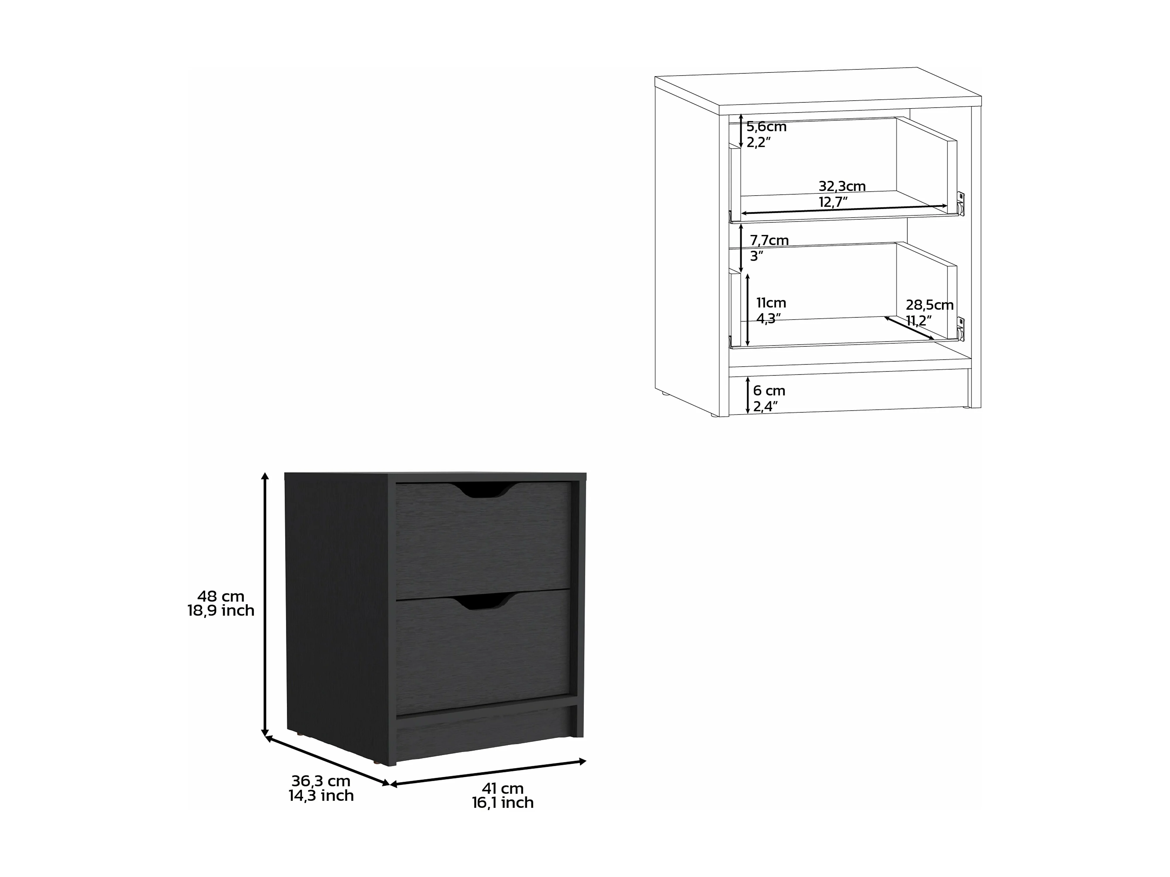Table de nuit Naples, avec 2 tiroirs, 50.54 cm X 40.69 cm X 32.76 cm , Noir