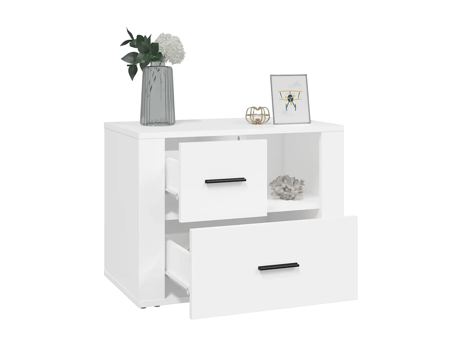 Table de chevet blanc brillant 40x35x70 cm bois d’ingénierie