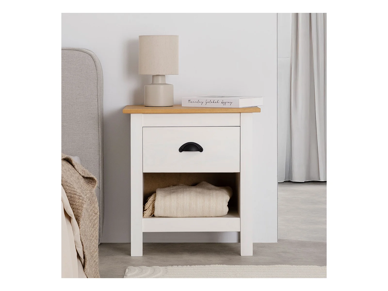 Table de chevet blanche TILLY H 50 cm en bois massif finition laquée avec 1 tiroir et 1 étagère table de nuit