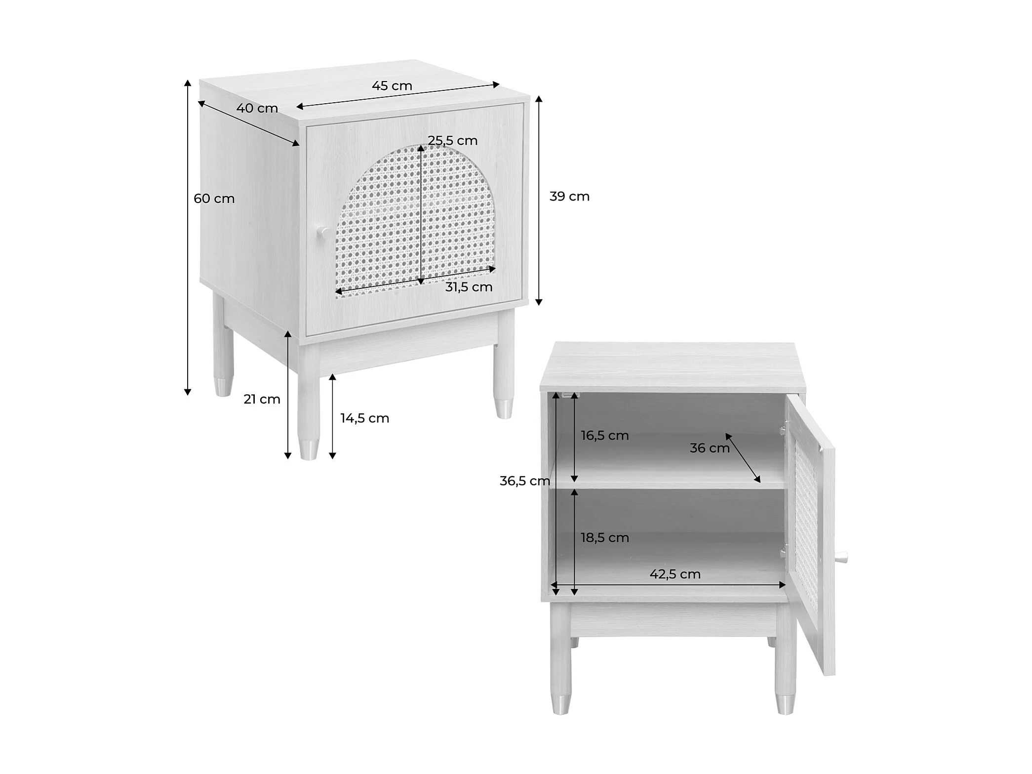 Lot de 2 tables de chevet bohème bois et cannage naturel 1 porte 45 x 40 x 60 cm - Judith