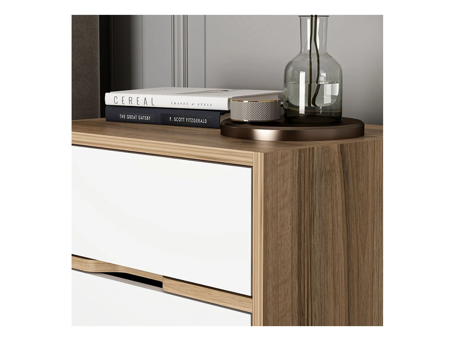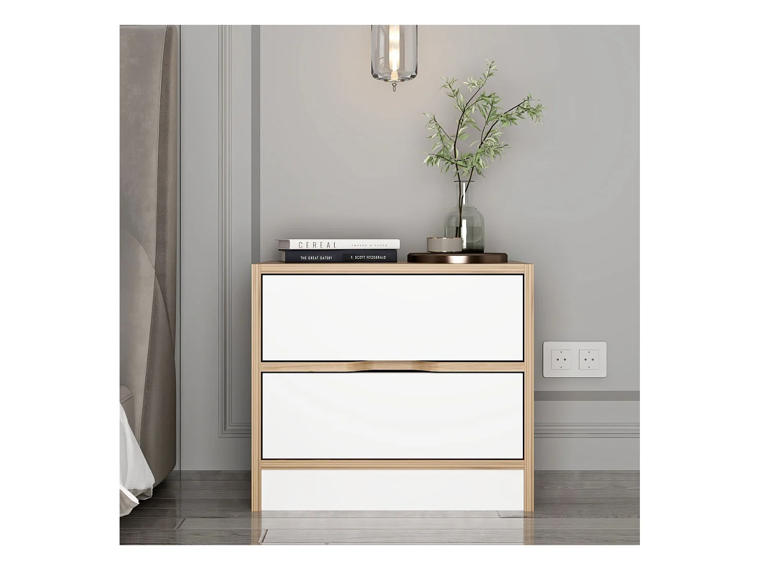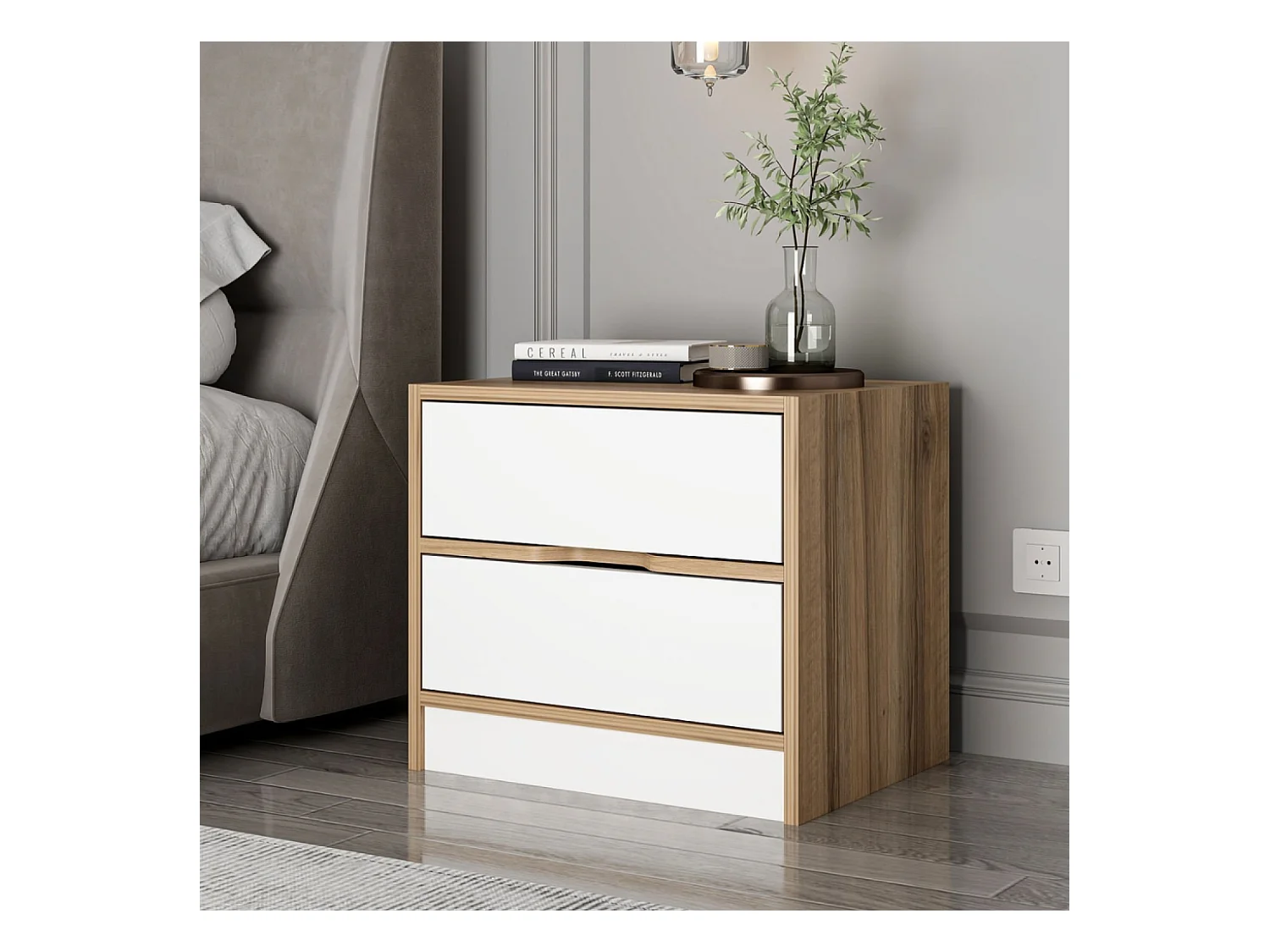 Table de chevet bois et blanc 2 tiroirs MOLDE