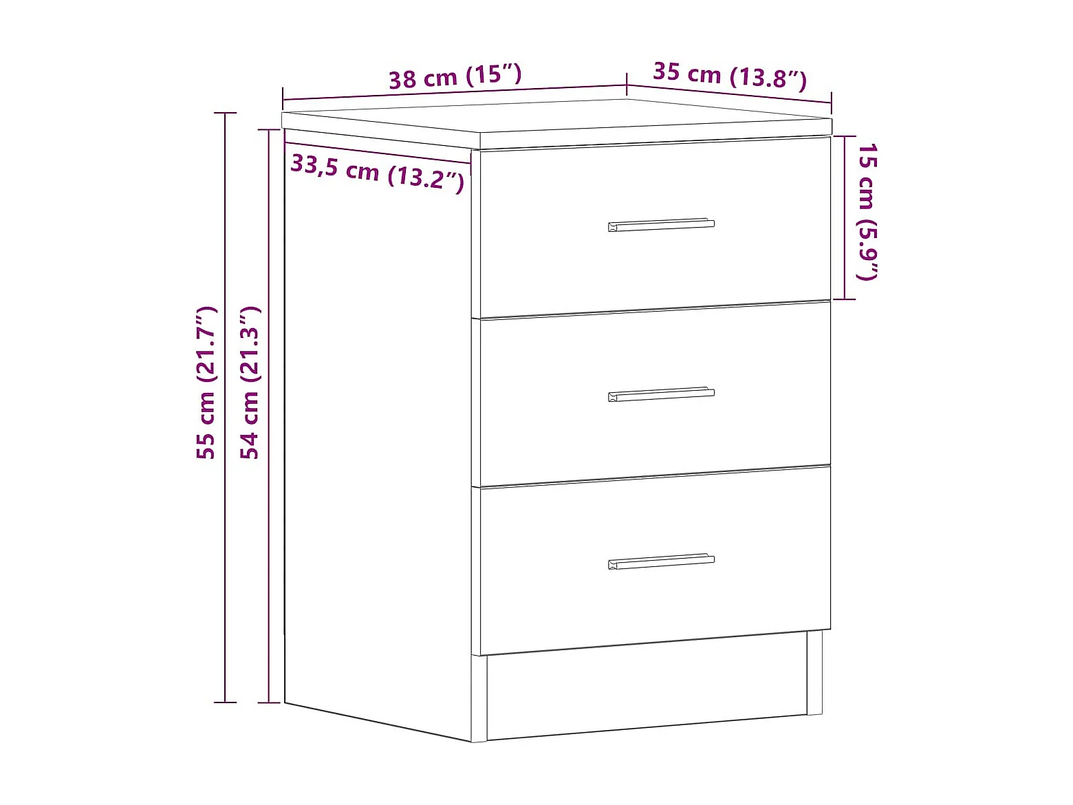 Tables de chevet avec 3 tiroirs 2 pcs chêne sonoma 39x35x65 cm