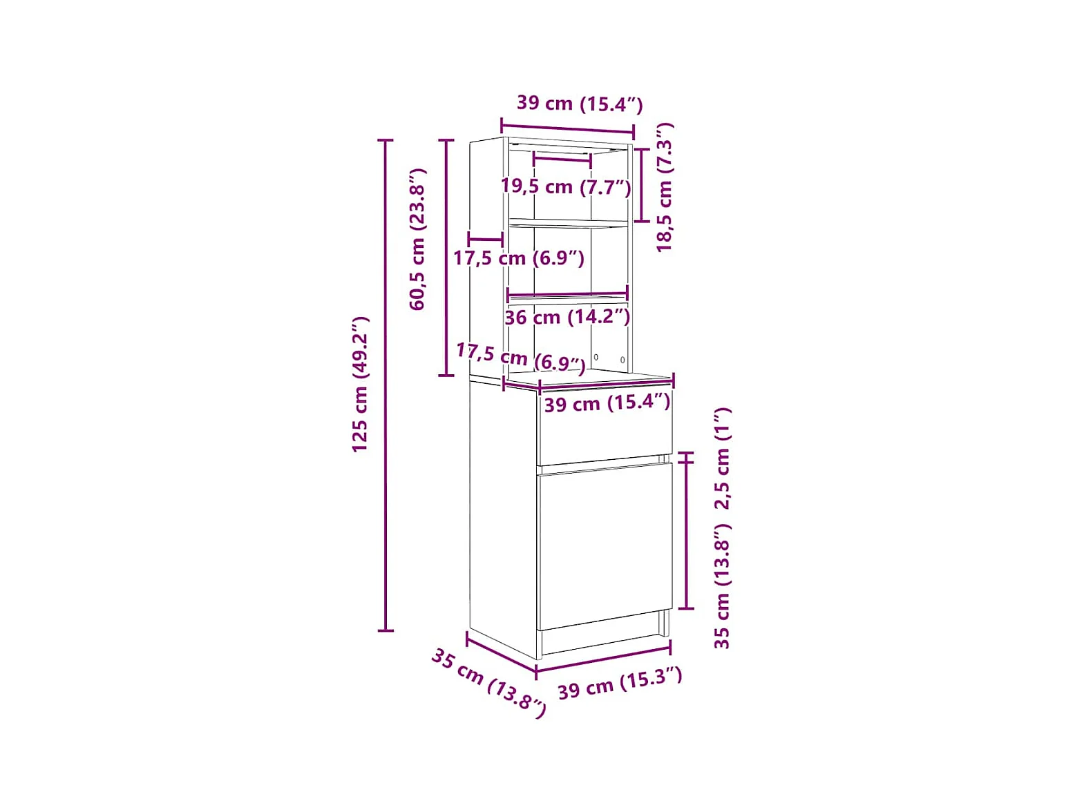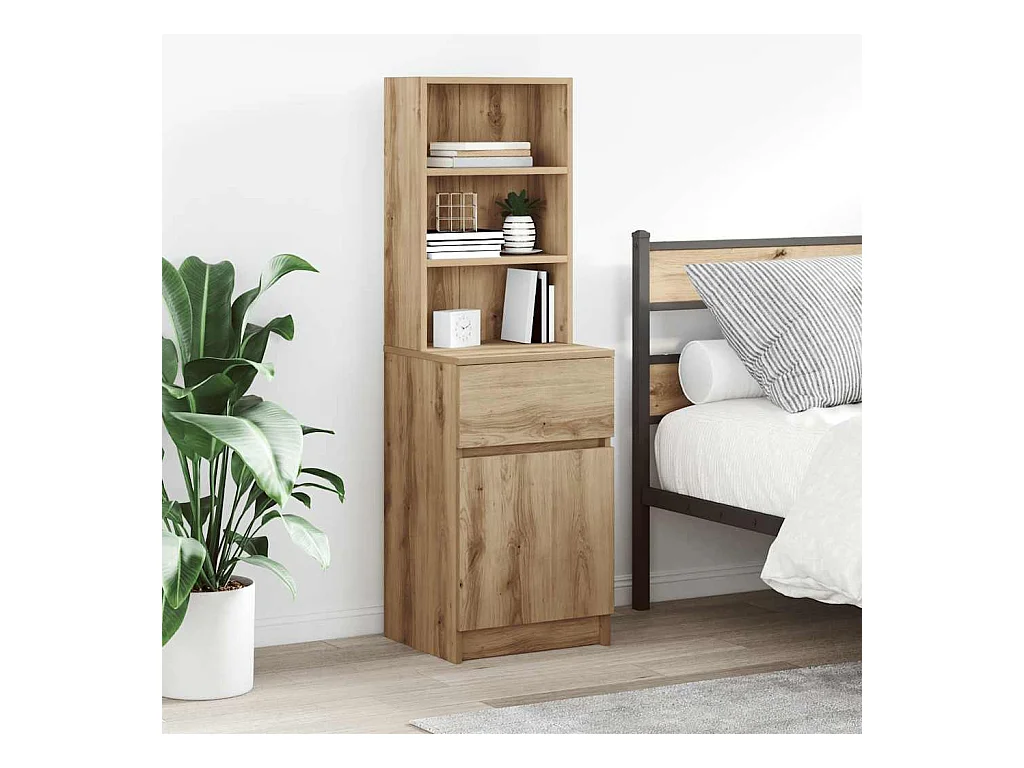 Table de chevet chêne artisanal 39x35x125 cm bois d'ingénierie