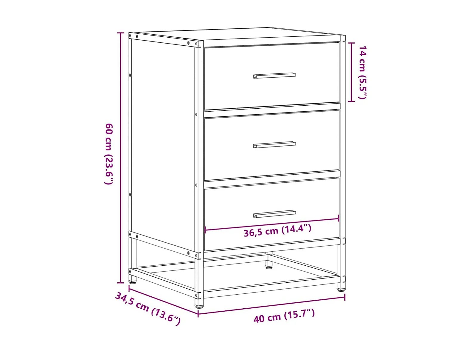 Table de chevet chêne fumé 40x34,5x60cm bois d'ingénierie métal