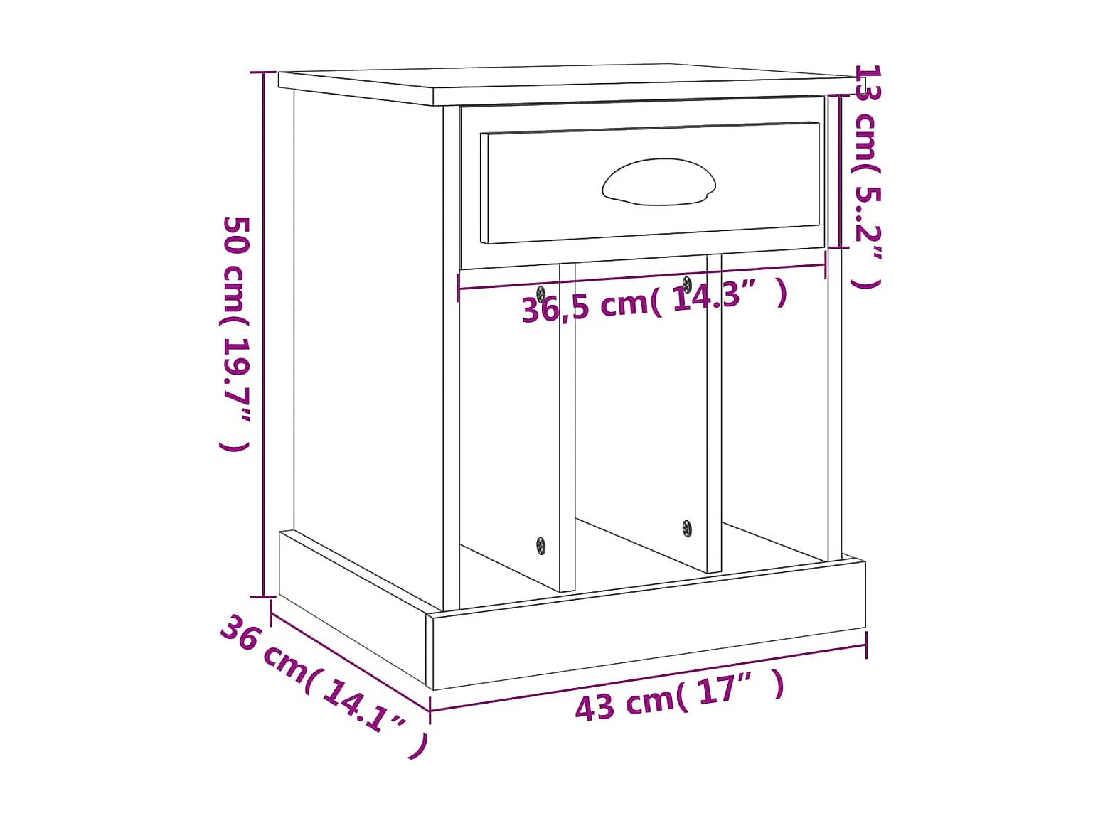 Table de chevet chêne sonoma 43x36x60