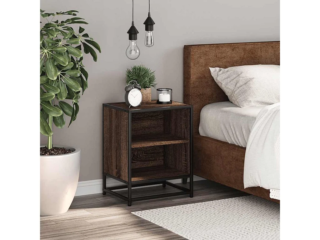 Table de chevet chêne marron 40x31x50cm bois d'ingénierie métal