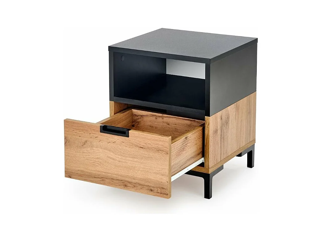 Table de chevet contemporaine noire et aspect chêne AWEN