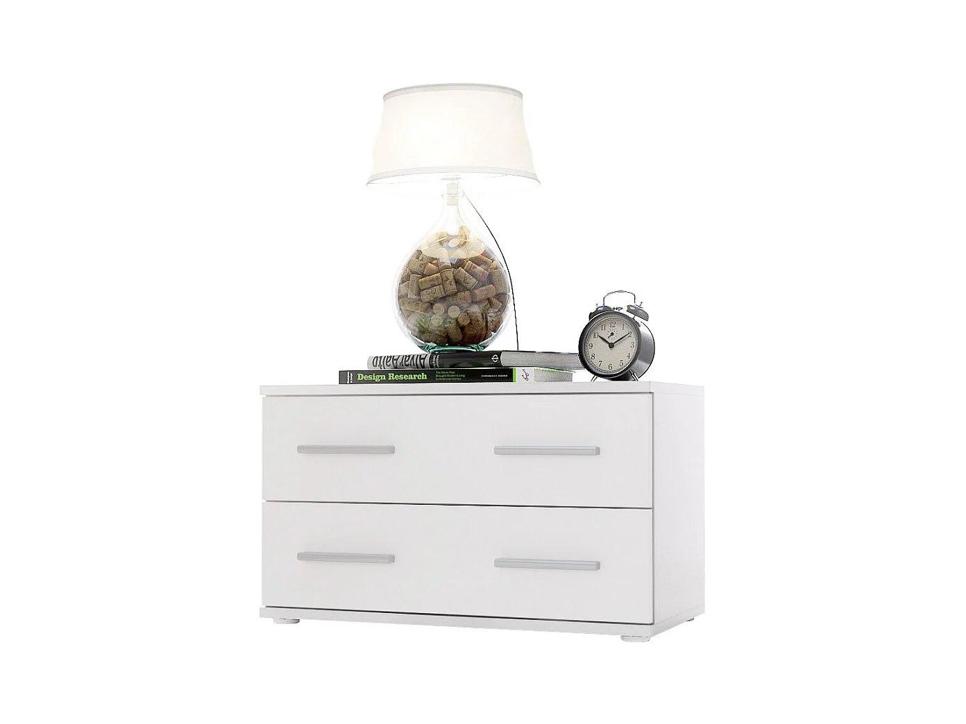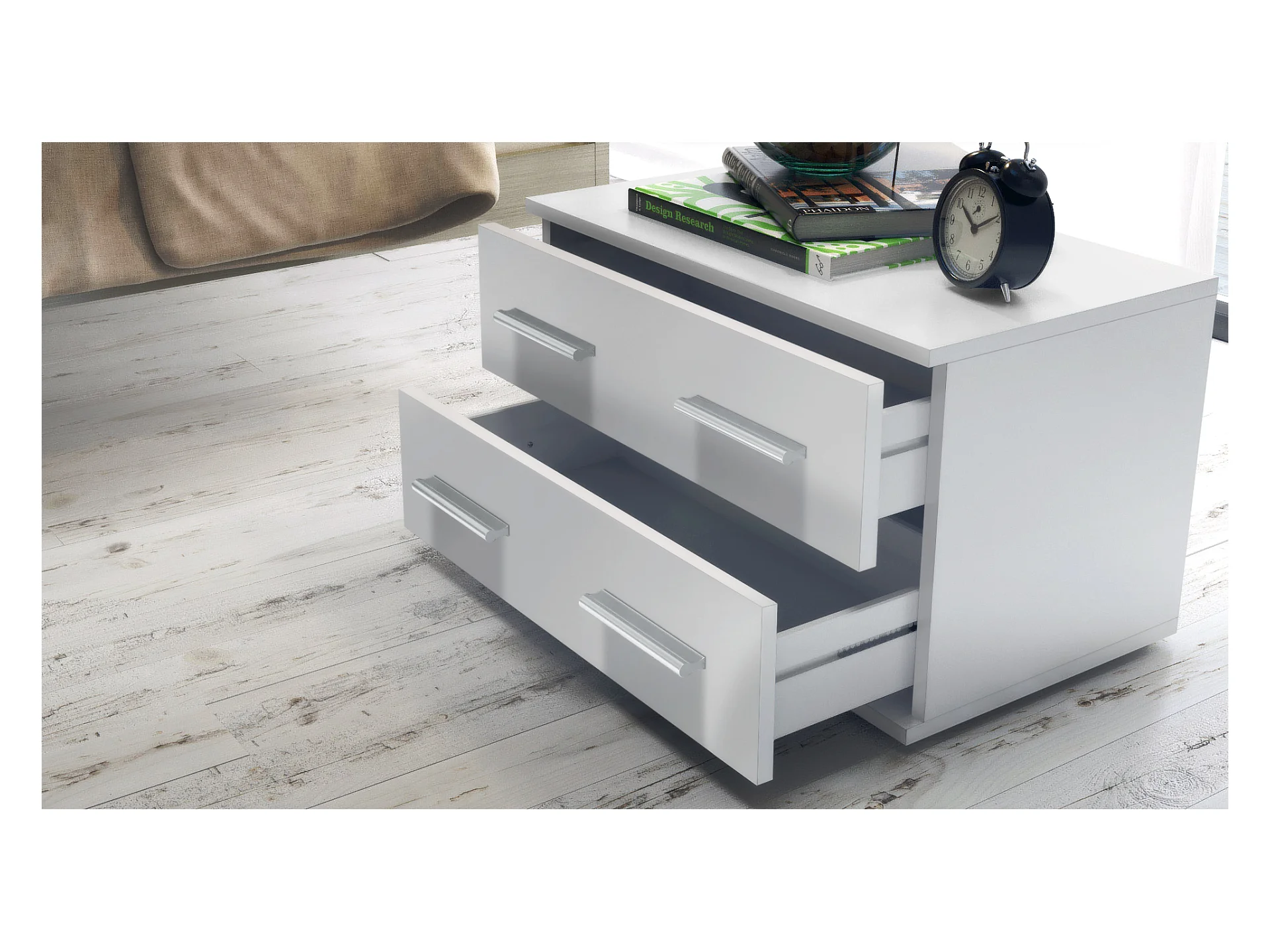 Table de chevet de nuit Kioto, Corps en Blanc mat / Façades en Blanc mat