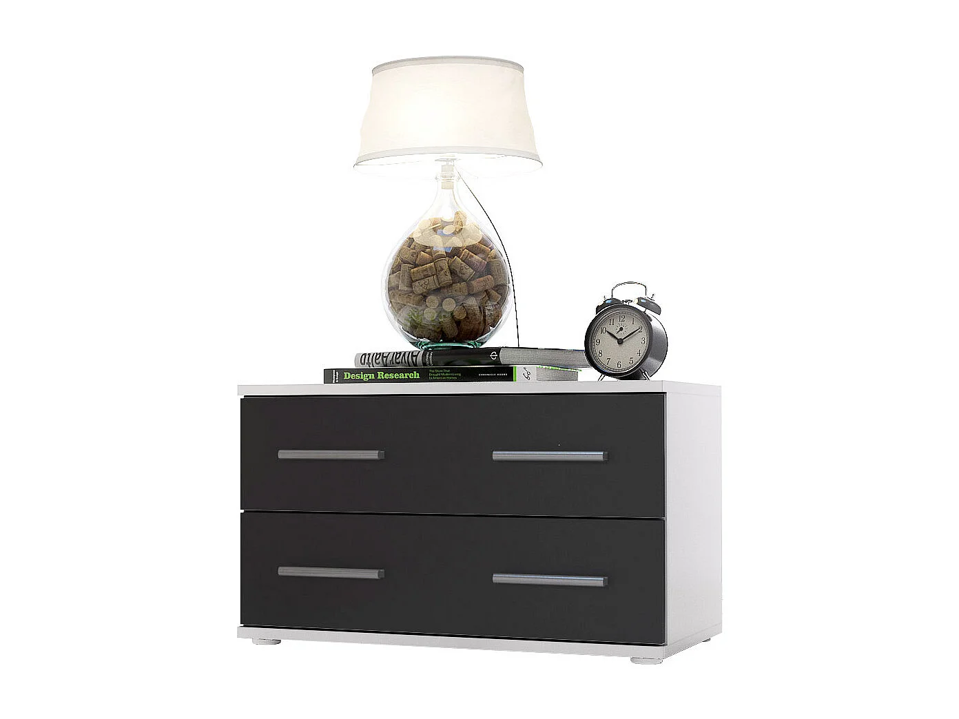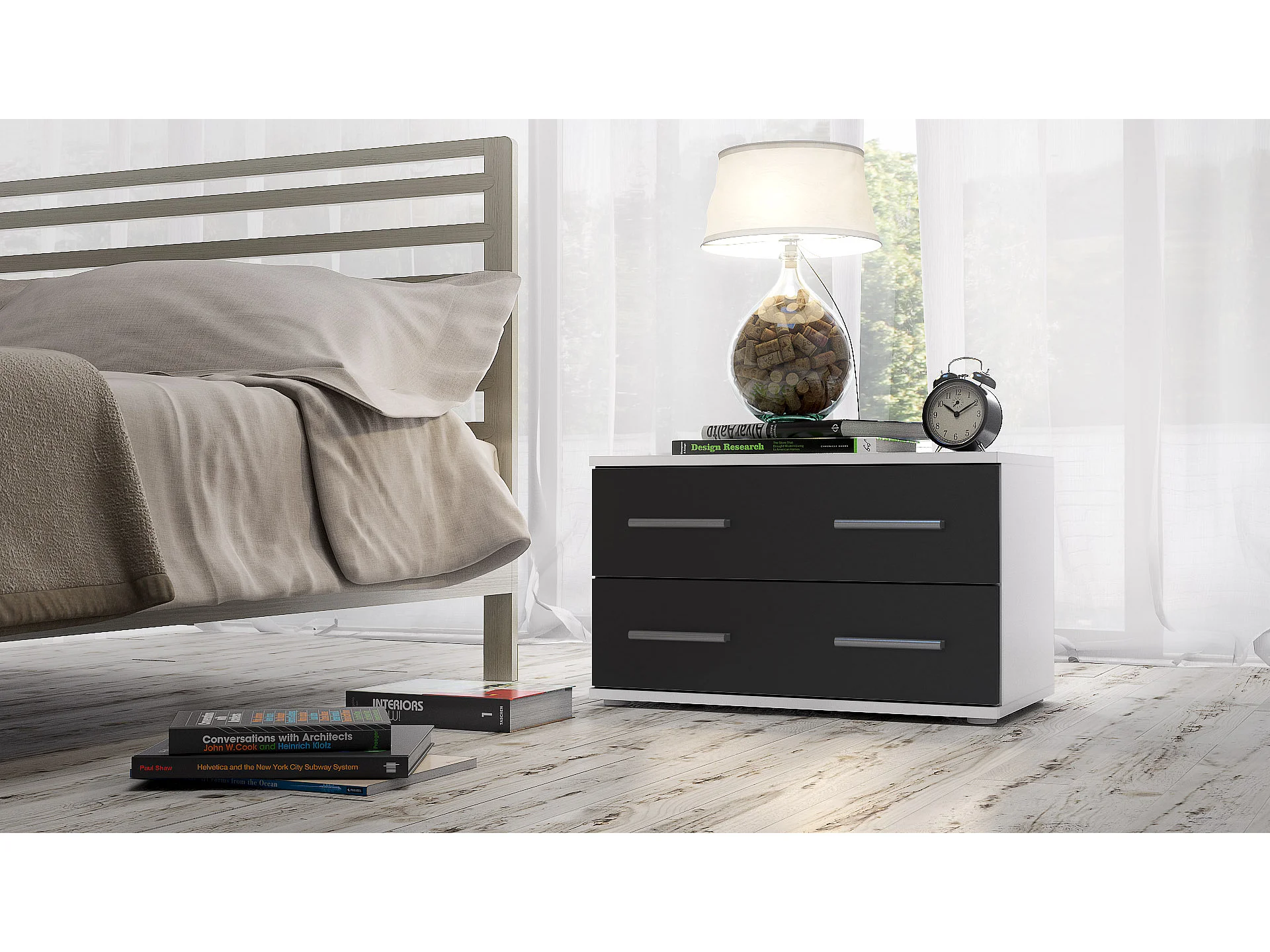 Table de chevet de nuit Kioto, Corps en Blanc mat / Façades en Noir mat