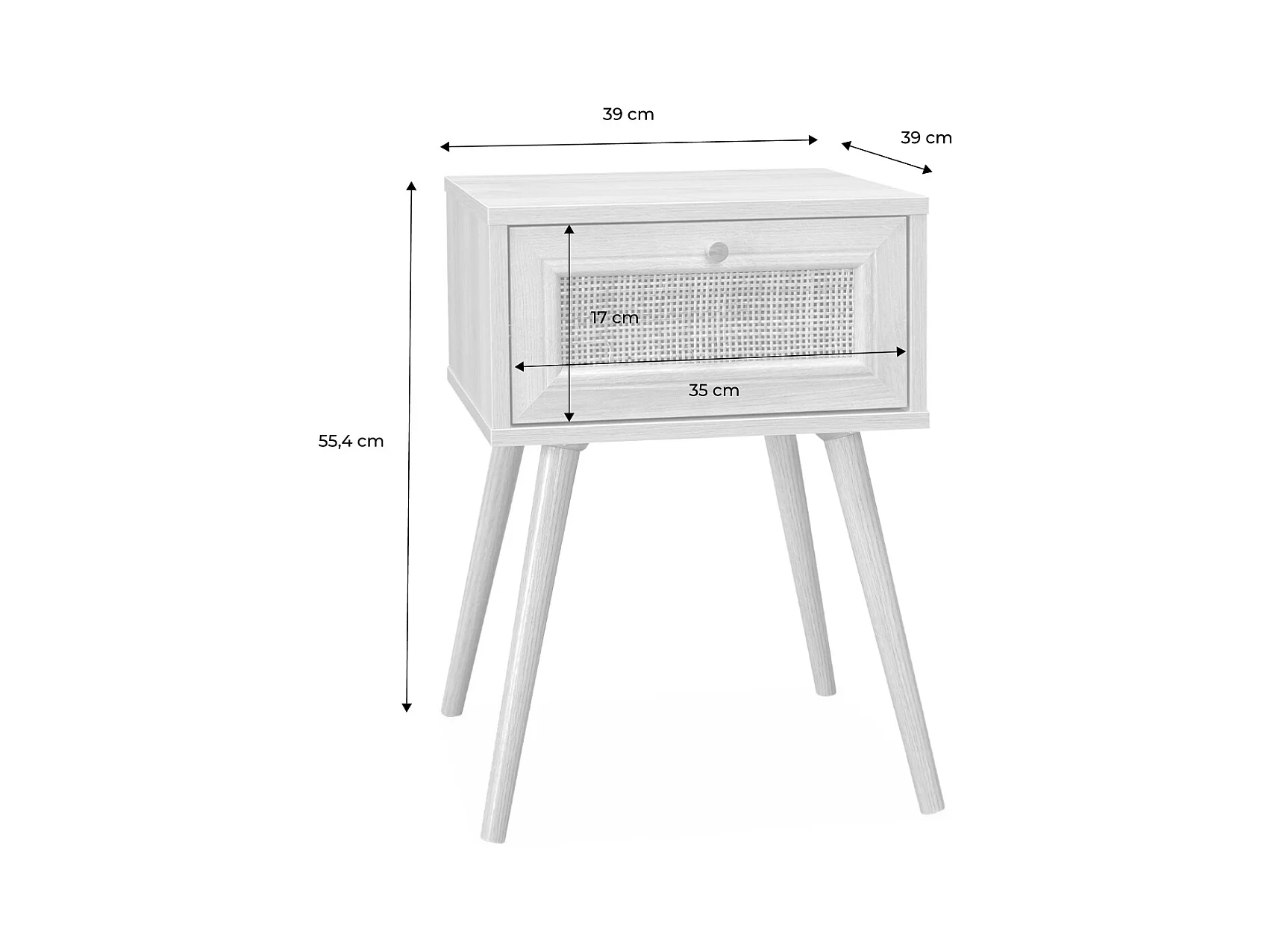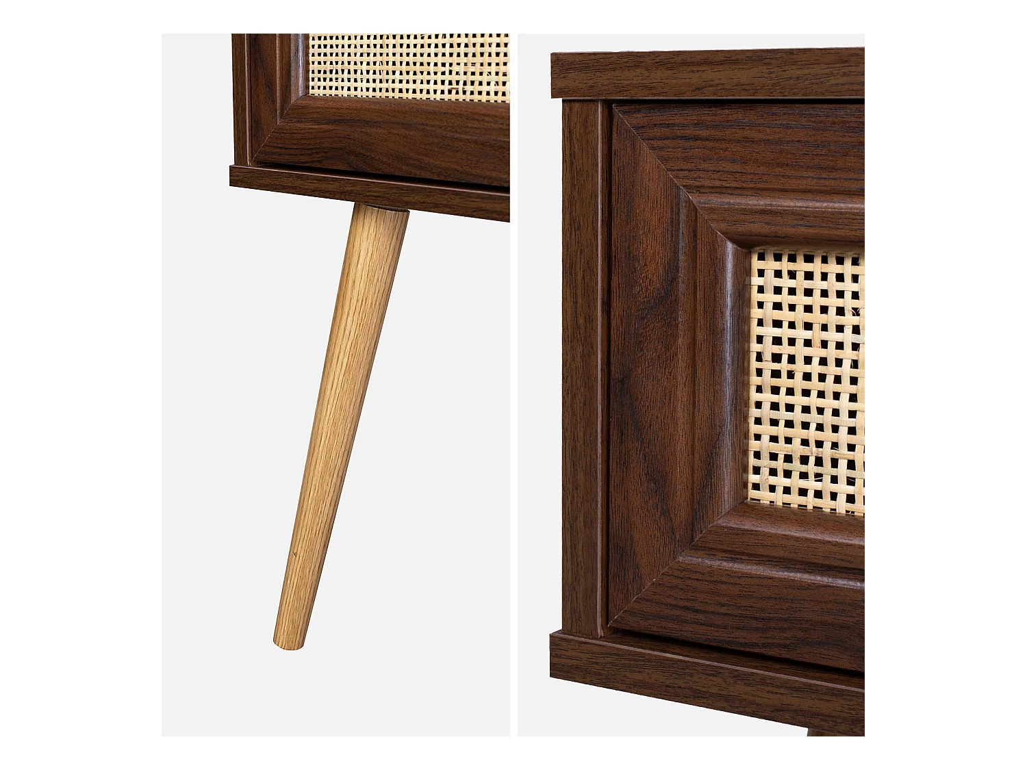 Table de chevet 1 tiroir en cannage naturel et effet chêne 40 cm - Iris