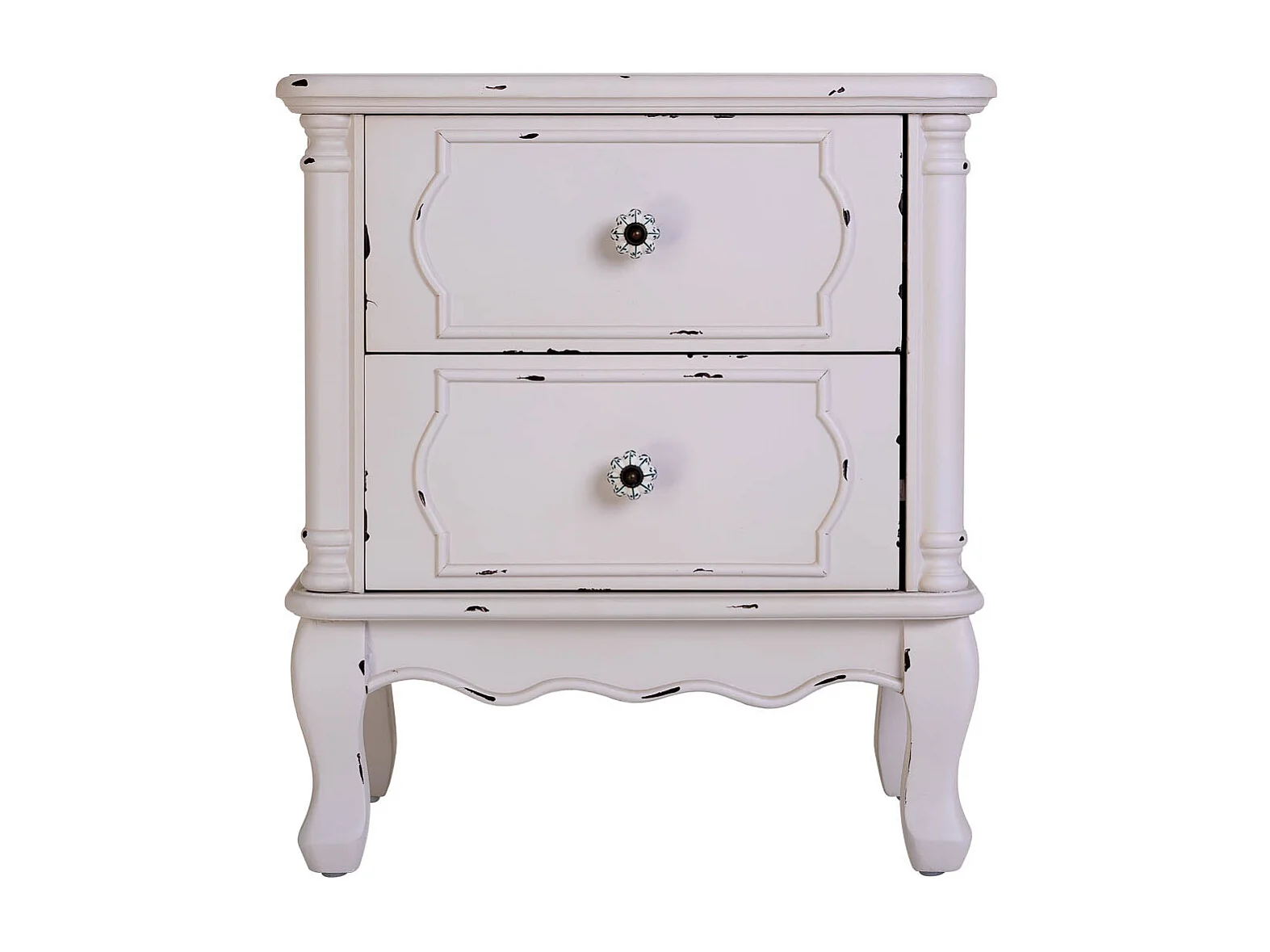 Table de chevet en bois blanc vieilli avec 2 tiroirs 50x36x55h cm