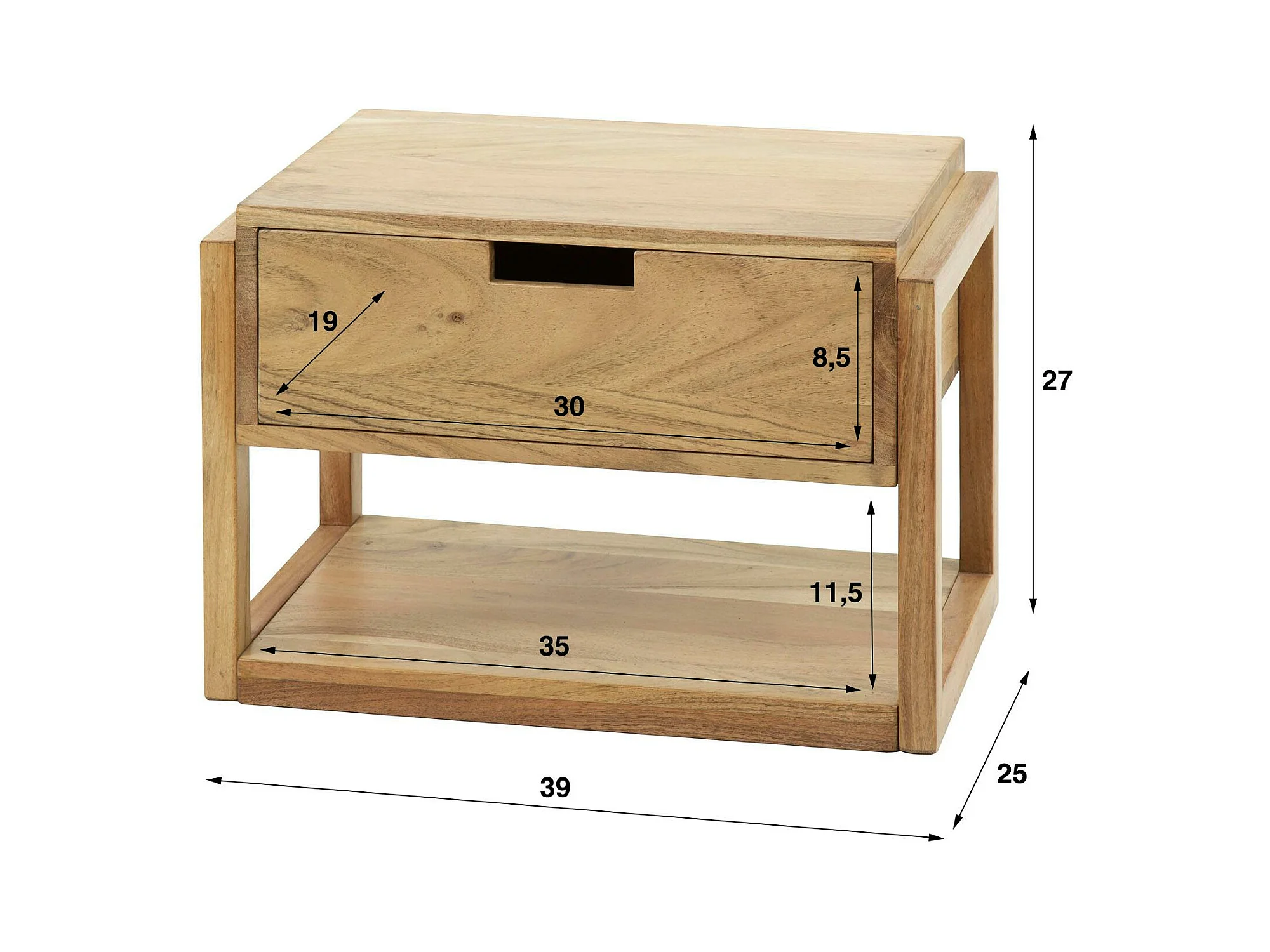 Table de chevet en bois d'acacia 1 tiroir suspendu MELBOURNE