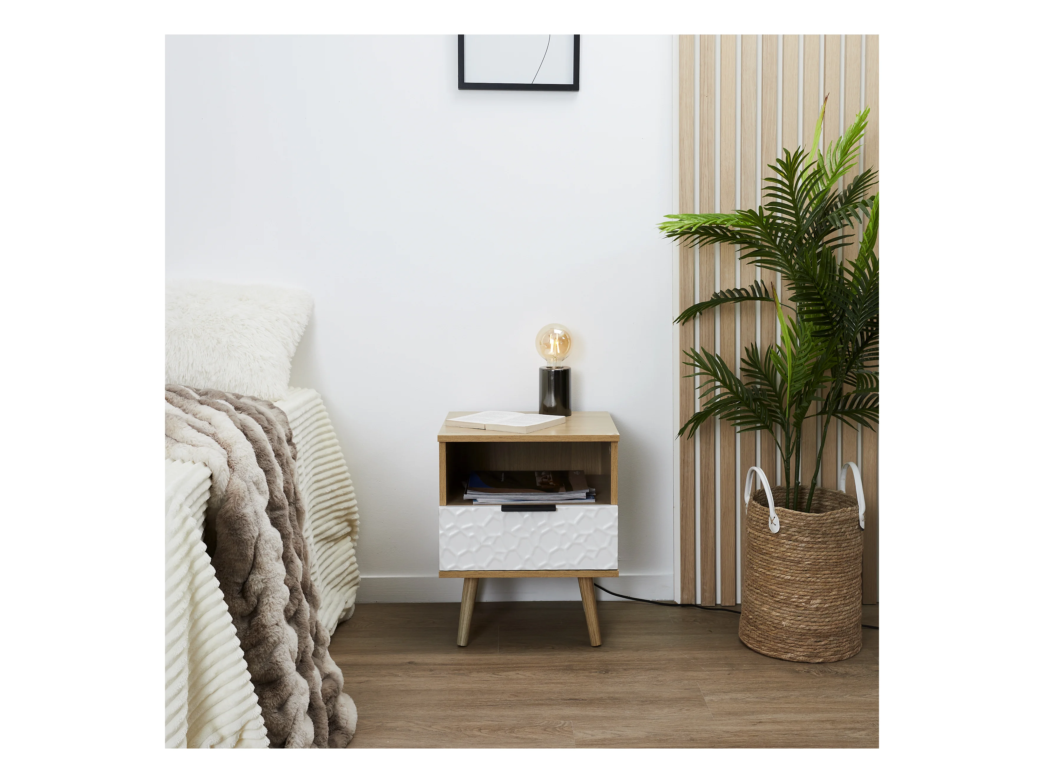 Table De Chevet Sven Marron, Blanc