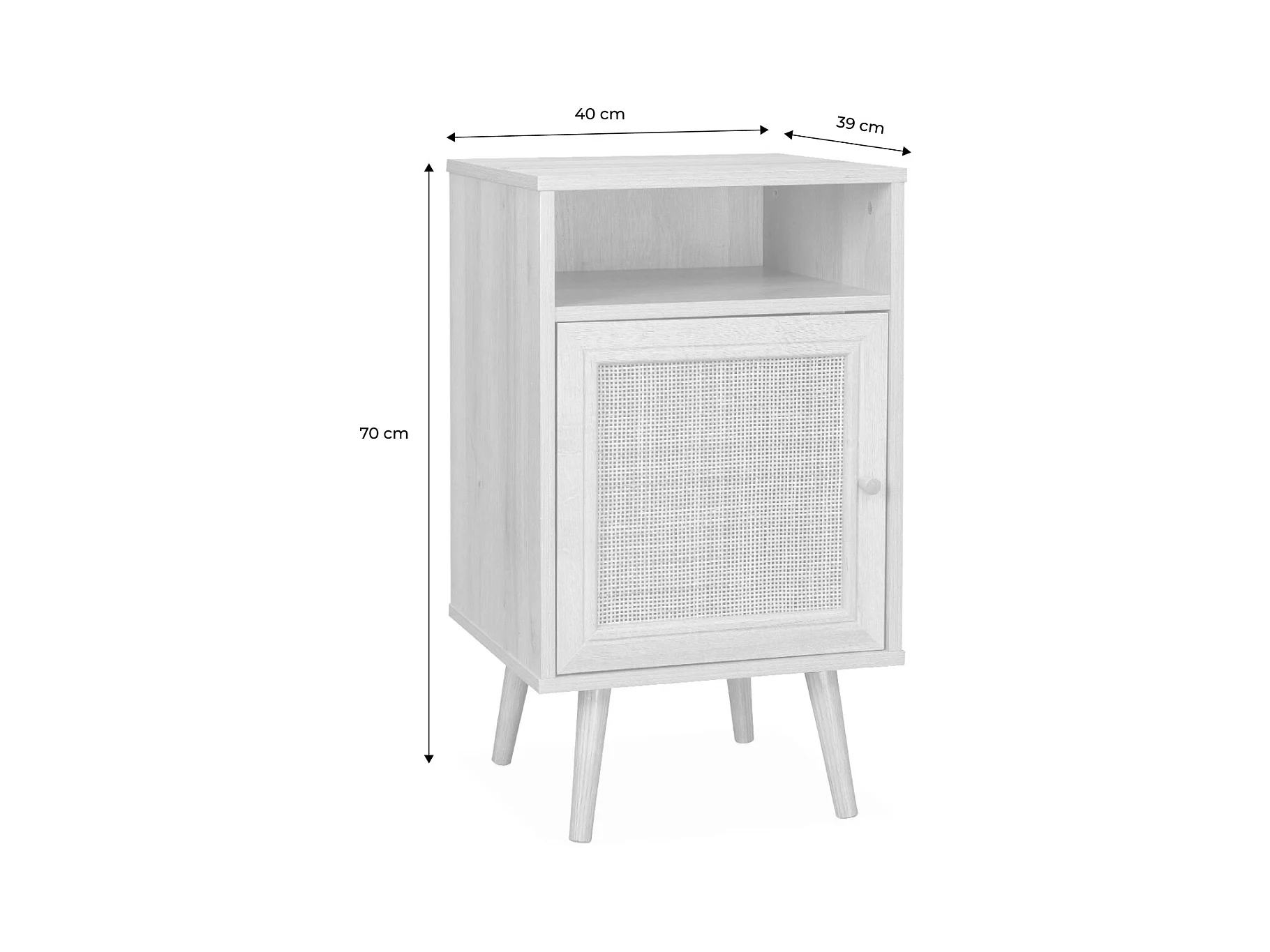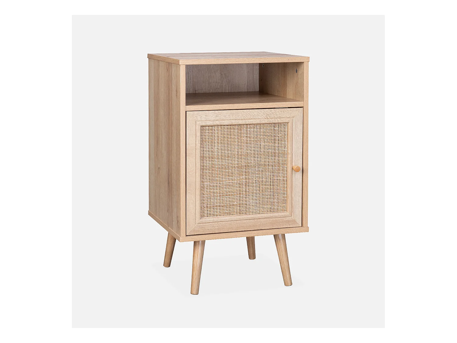 Table de chevet en cannage coloris naturel - Bohème - 40x39x70cm. naturel - 2 niveaux - 1 porte - 1 espace de rangement - pieds scandinaves