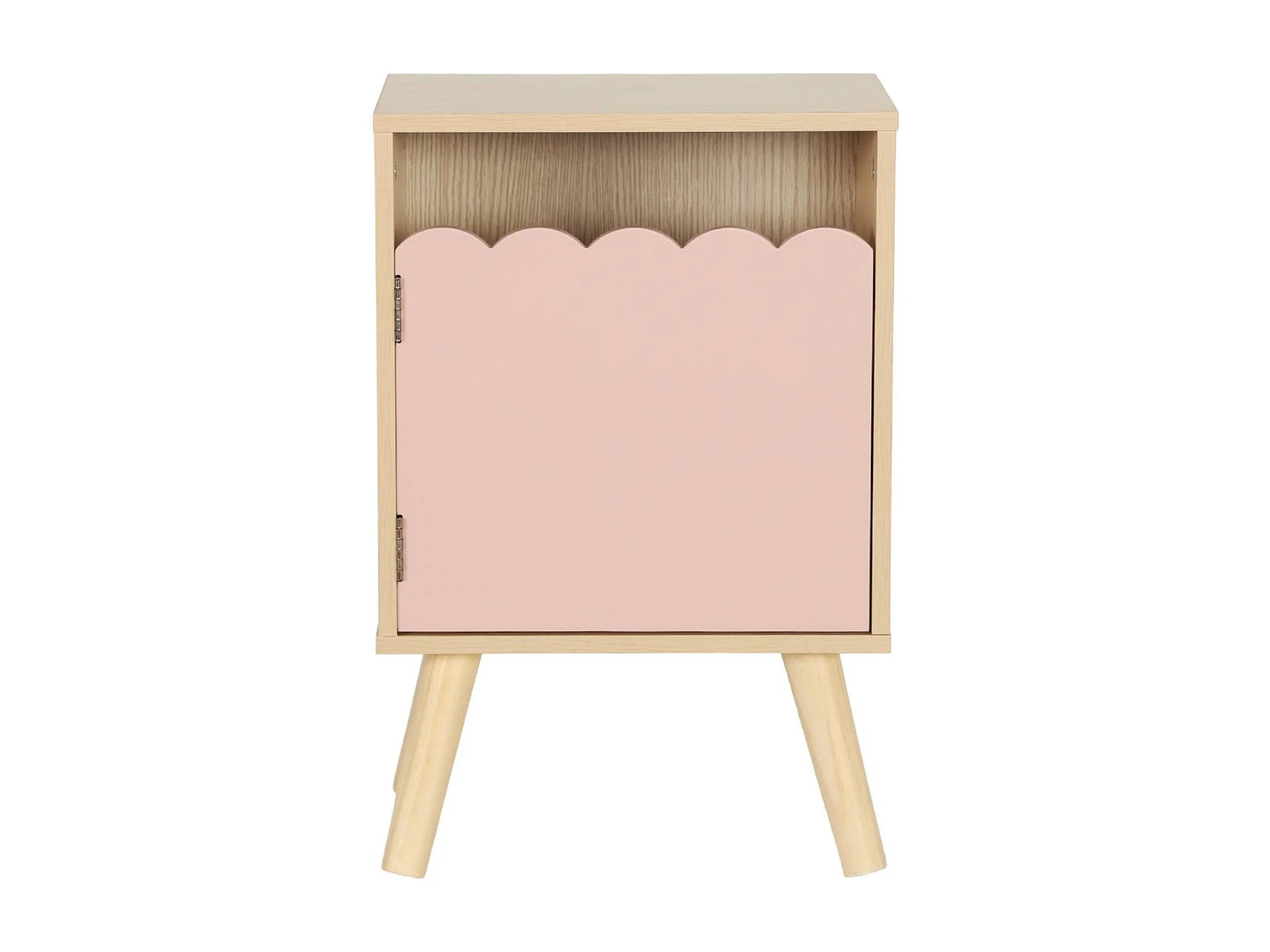 Table de chevet enfant décor bois rose 1 porte. pieds bois de pin - 34 x 23.5 x 52 cm - Azur