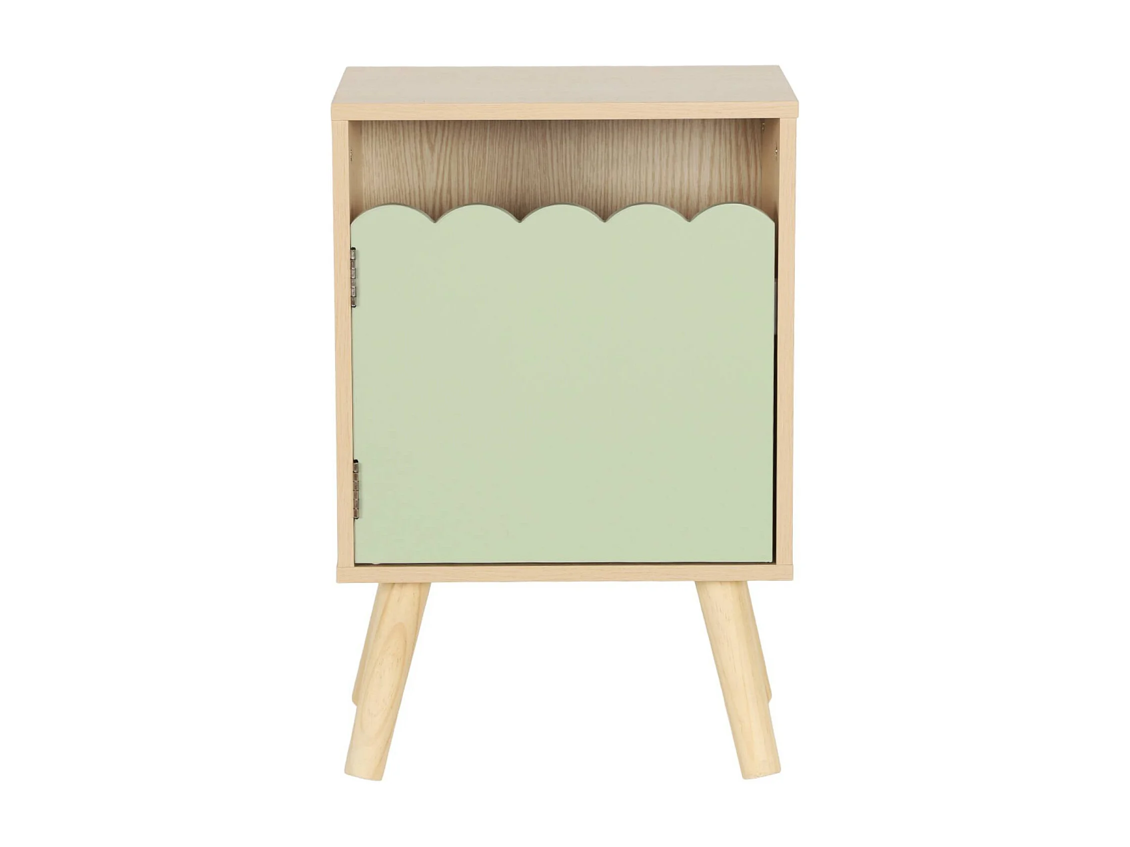 Table de chevet enfant décor bois vert 1 porte. pieds bois de pin - 34 x 23.5 x 52 cm - Azur