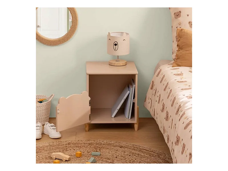 Table de chevet enfant 1 porte en bois beige - Bastien