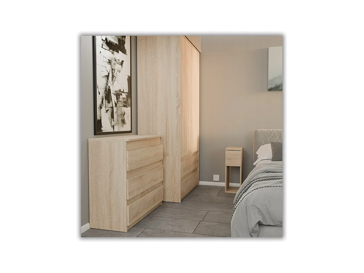 Table de chevet Wotan 40 CM 2 tiroirs 1 étagère – Meuble de chambre à coucher