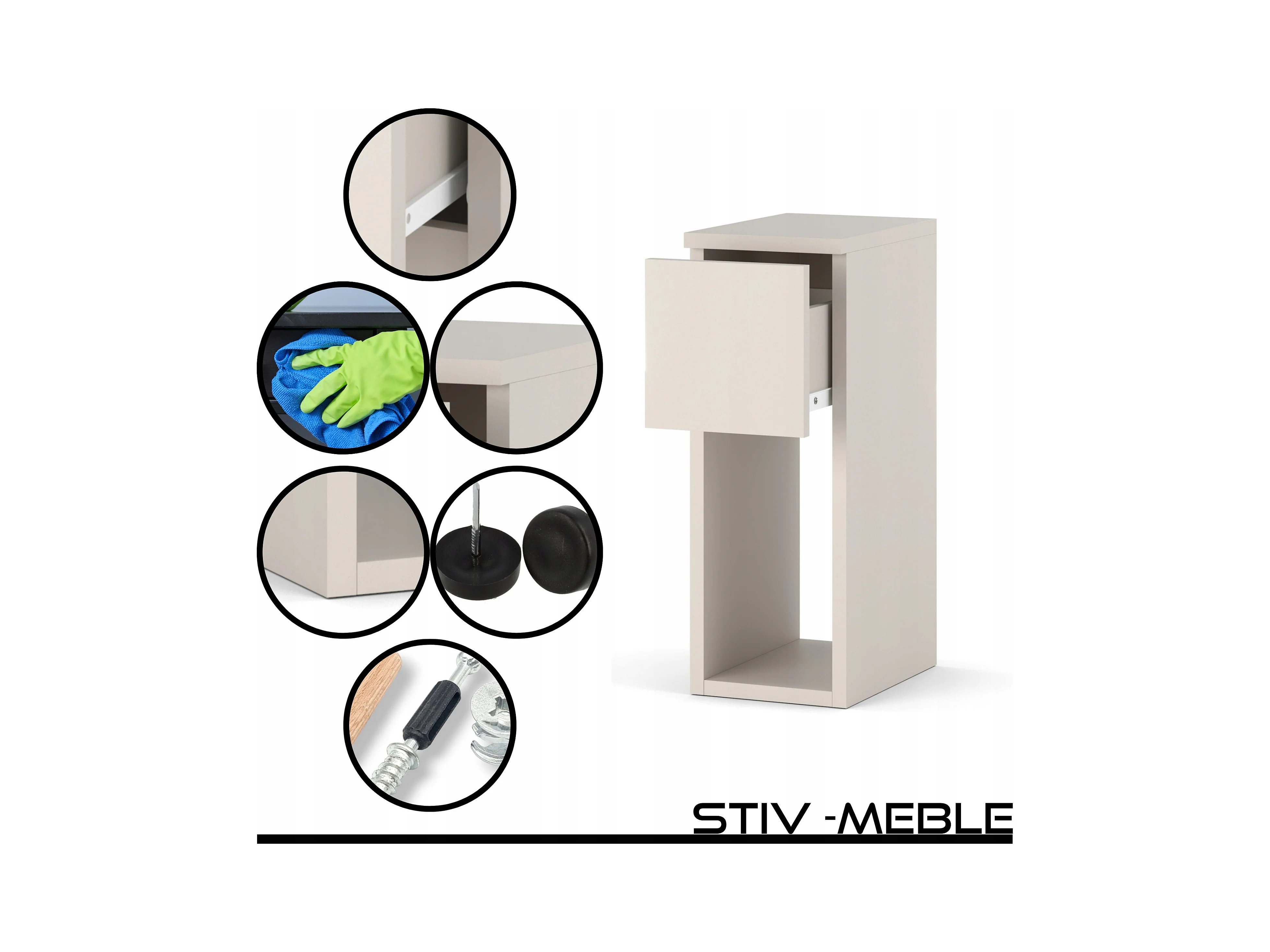 Table de chevet étroite 20 cm couleur Cachemire Beige, petite table de nuit pour chambre