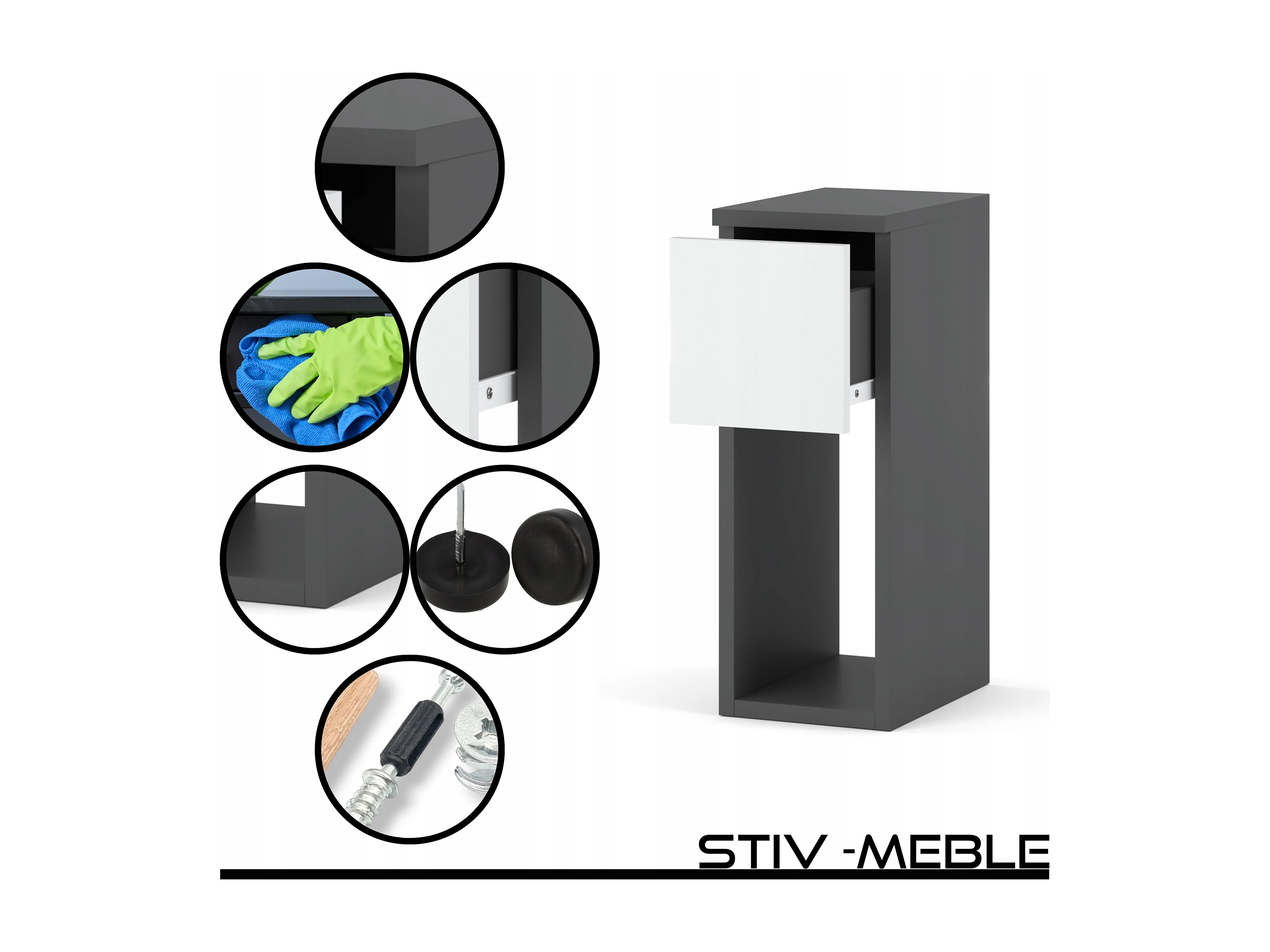 Table de chevet étroite 20 cm, petite table de nuit grise et blanche pour chambre à coucher – chevet
