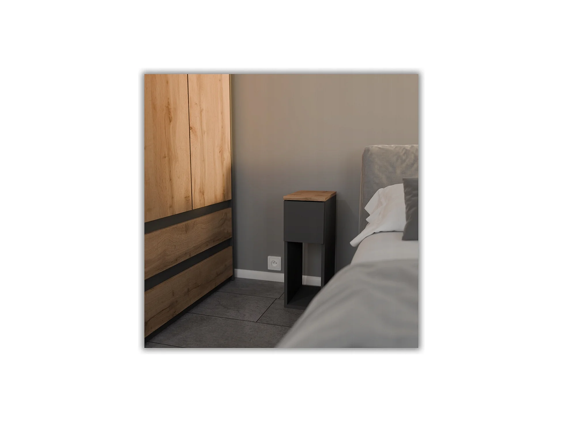 Table de chevet étroite grise / chêne Wotan 20 cm, style loft, table de nuit pour chambre